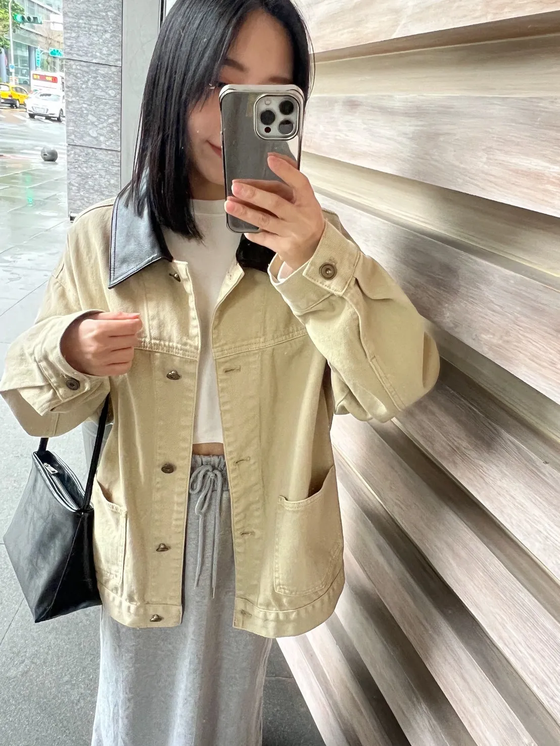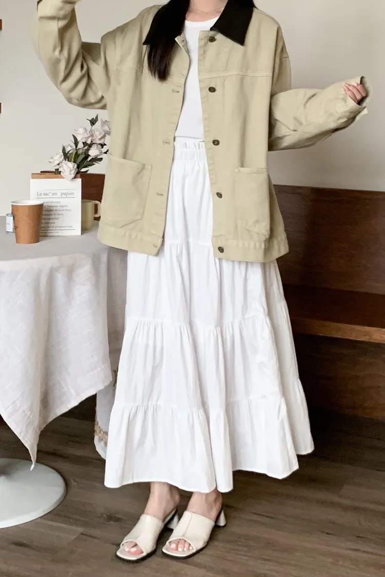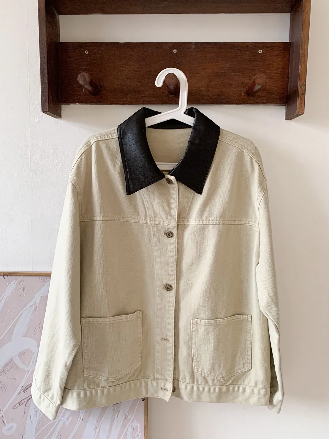 日不落尖領撞色丹寧外