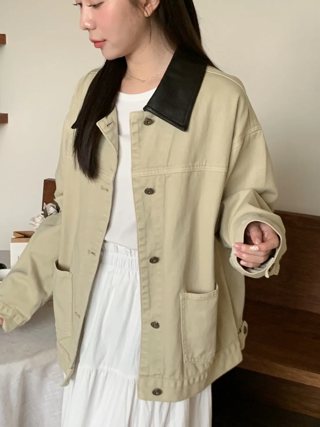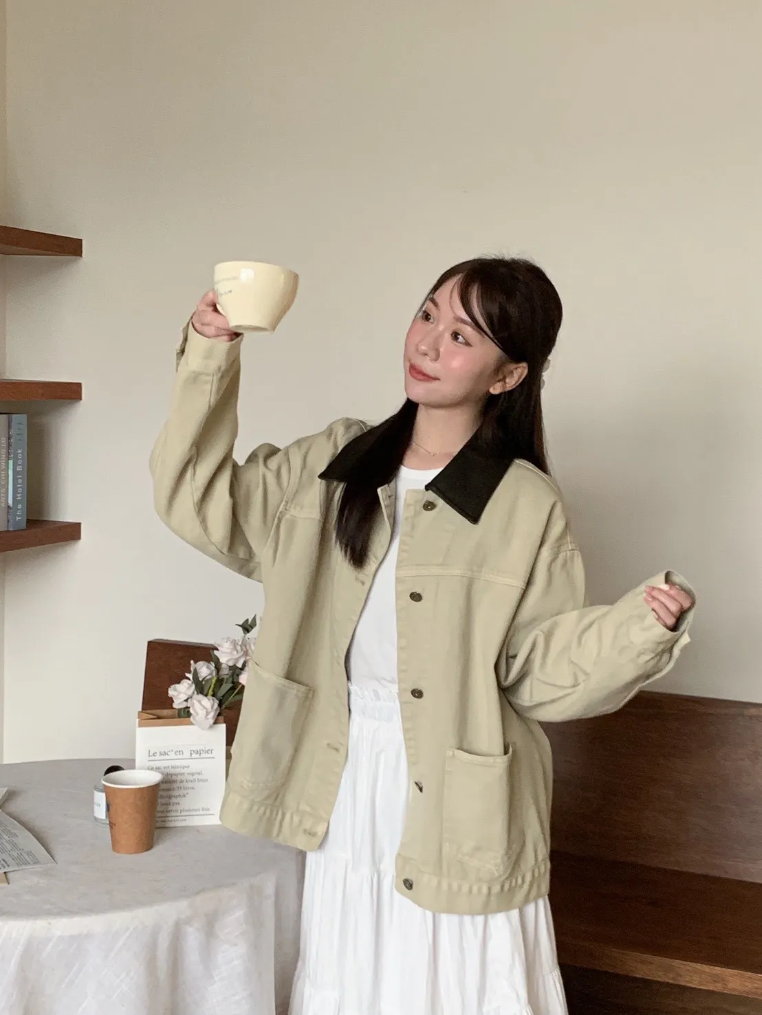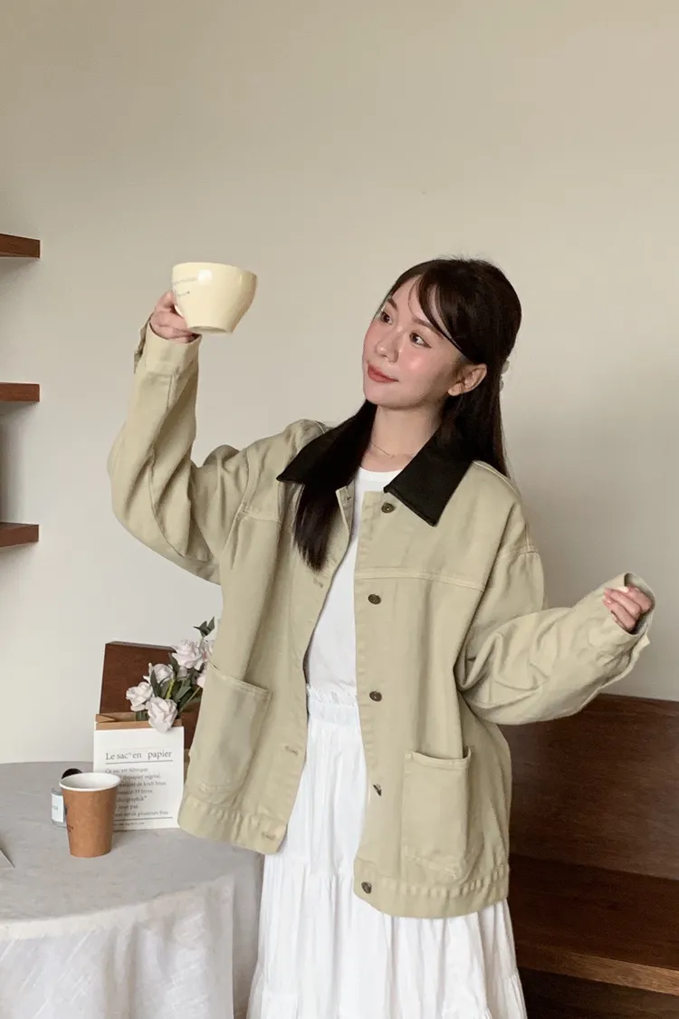 [卡其+深咖領子]