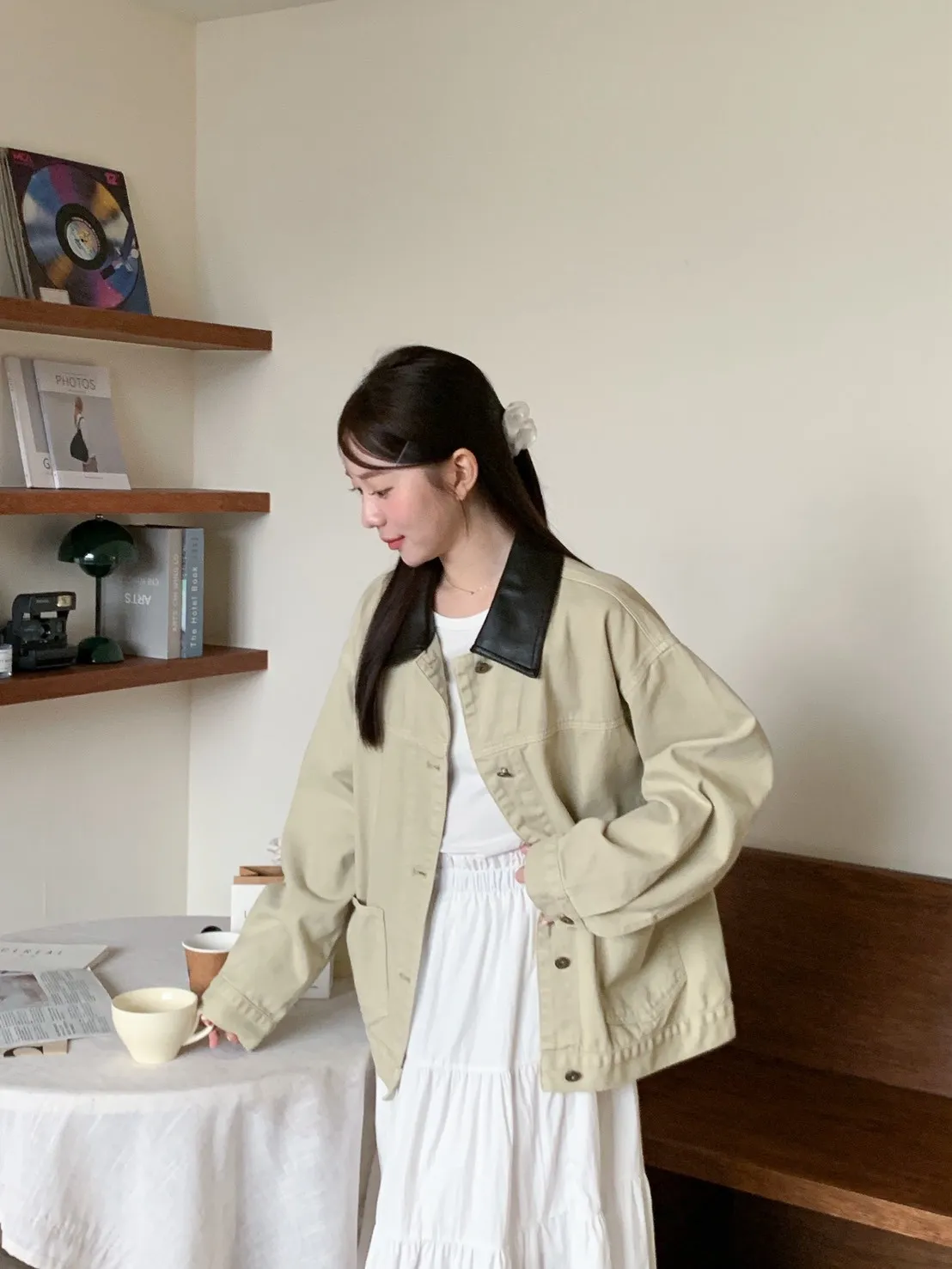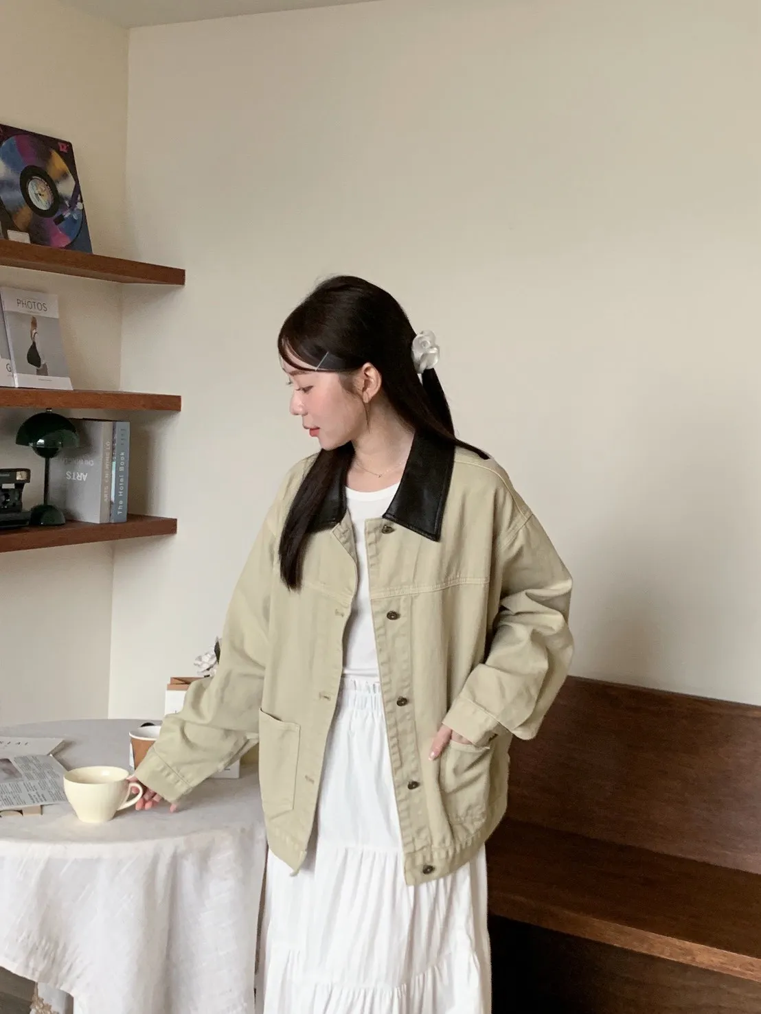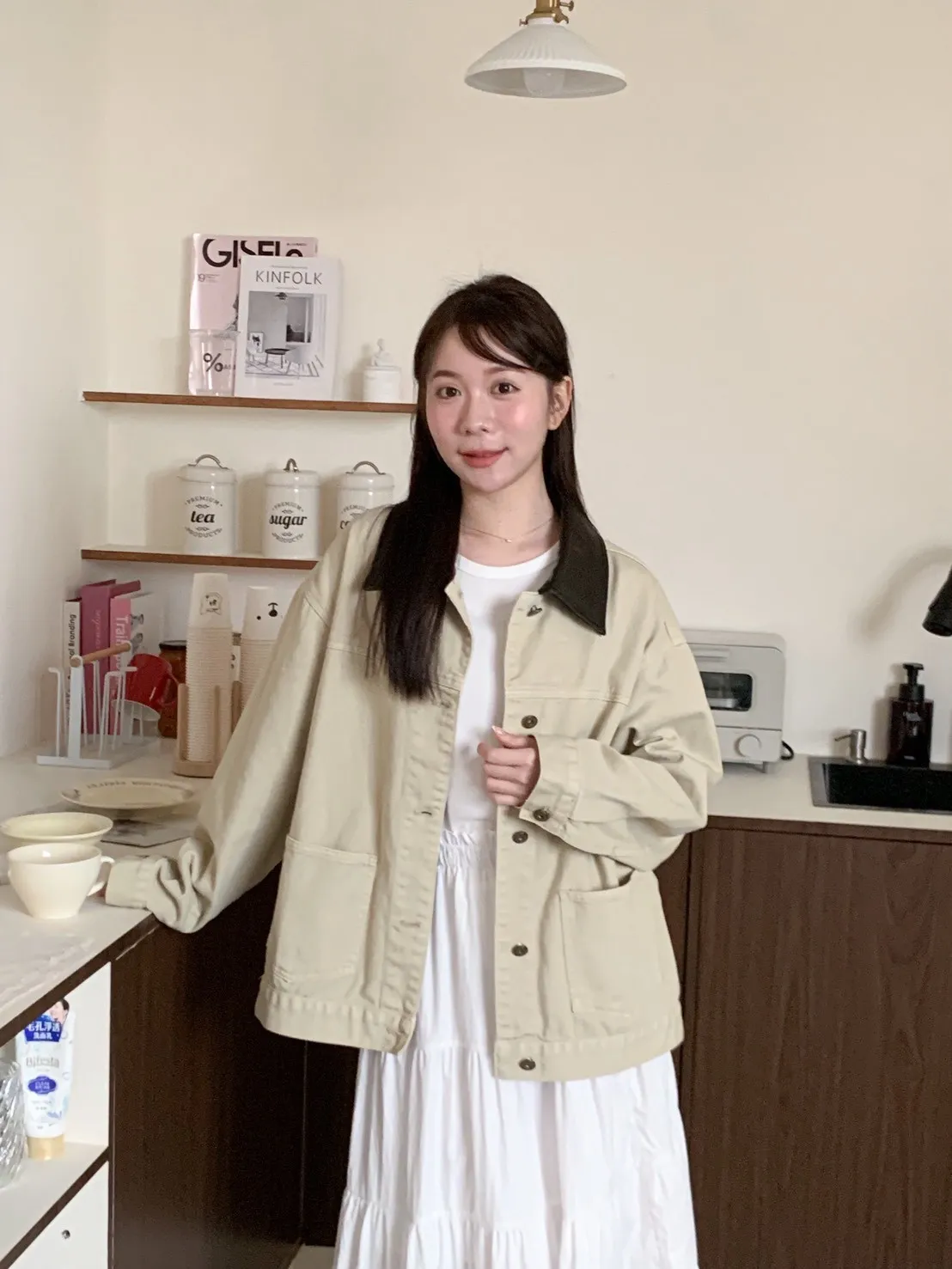 [卡其+深咖領子]