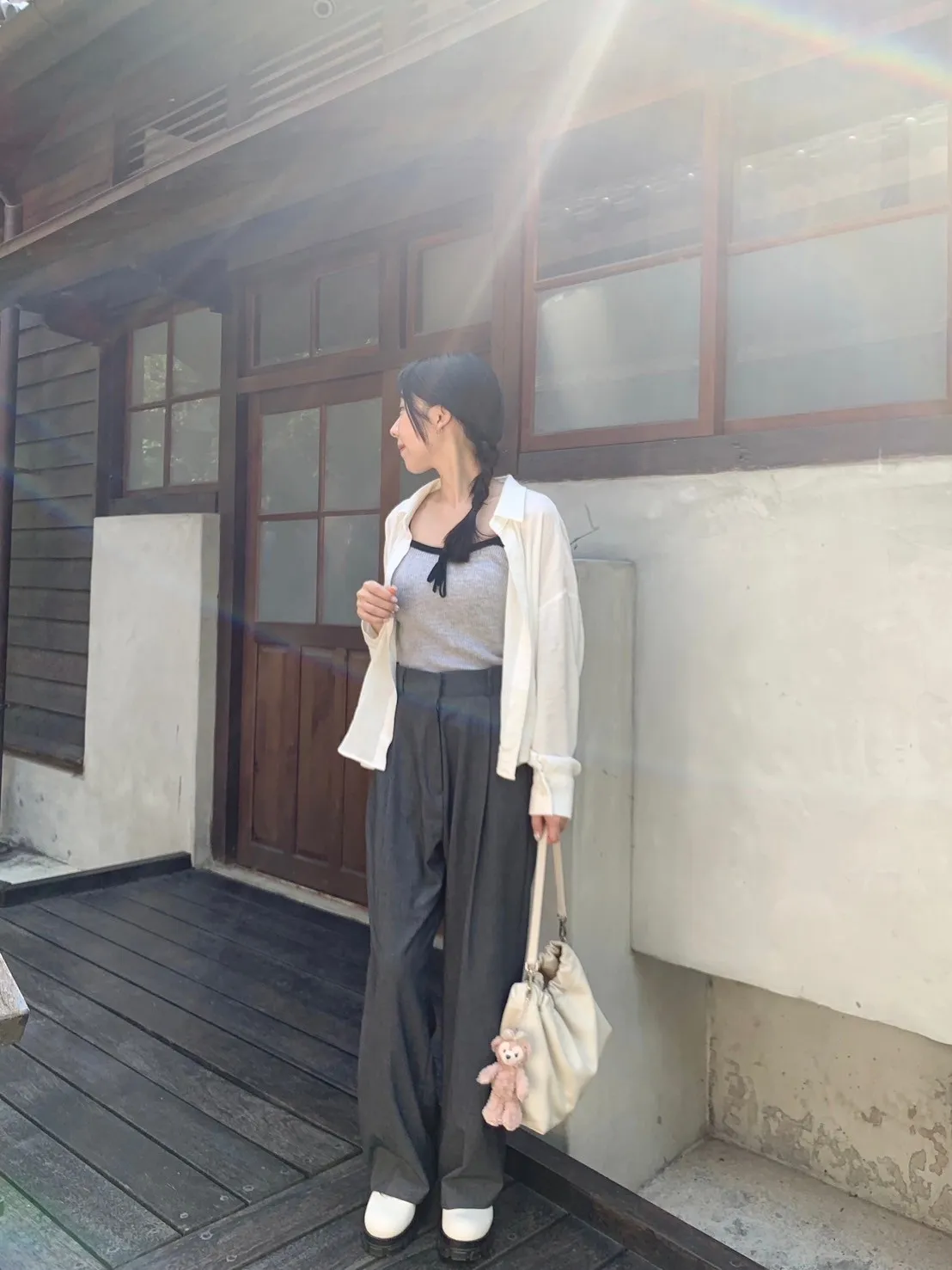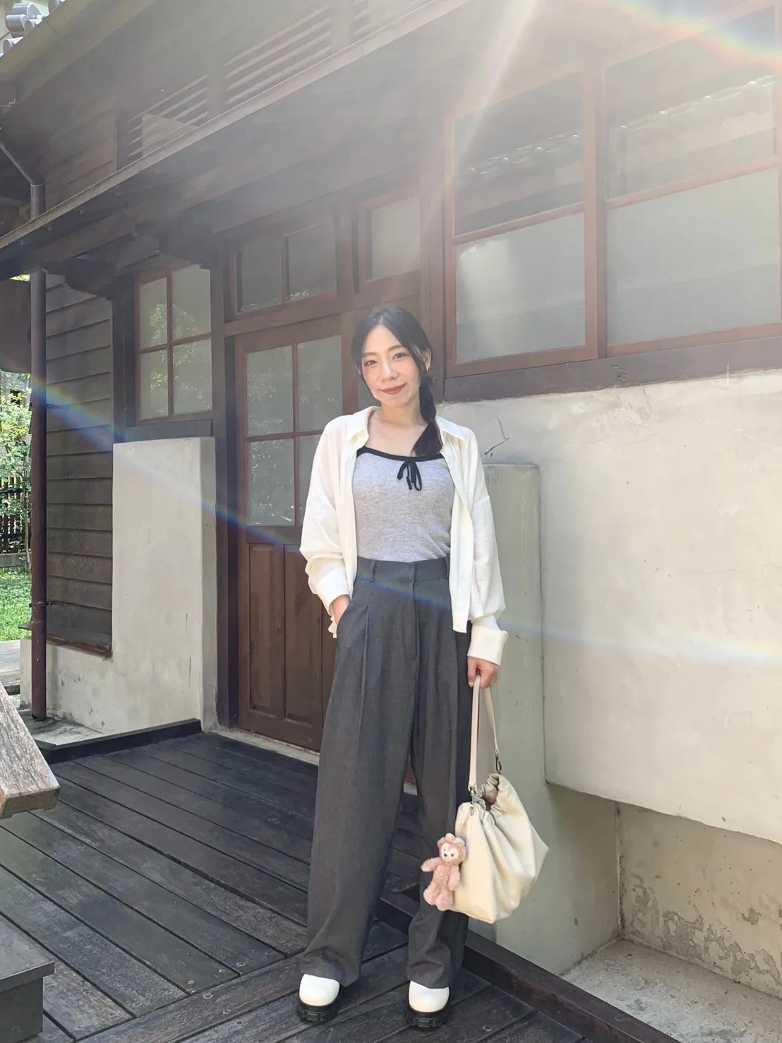 搭配白、米白、奶茶、咖、黑、條紋都非常好看
