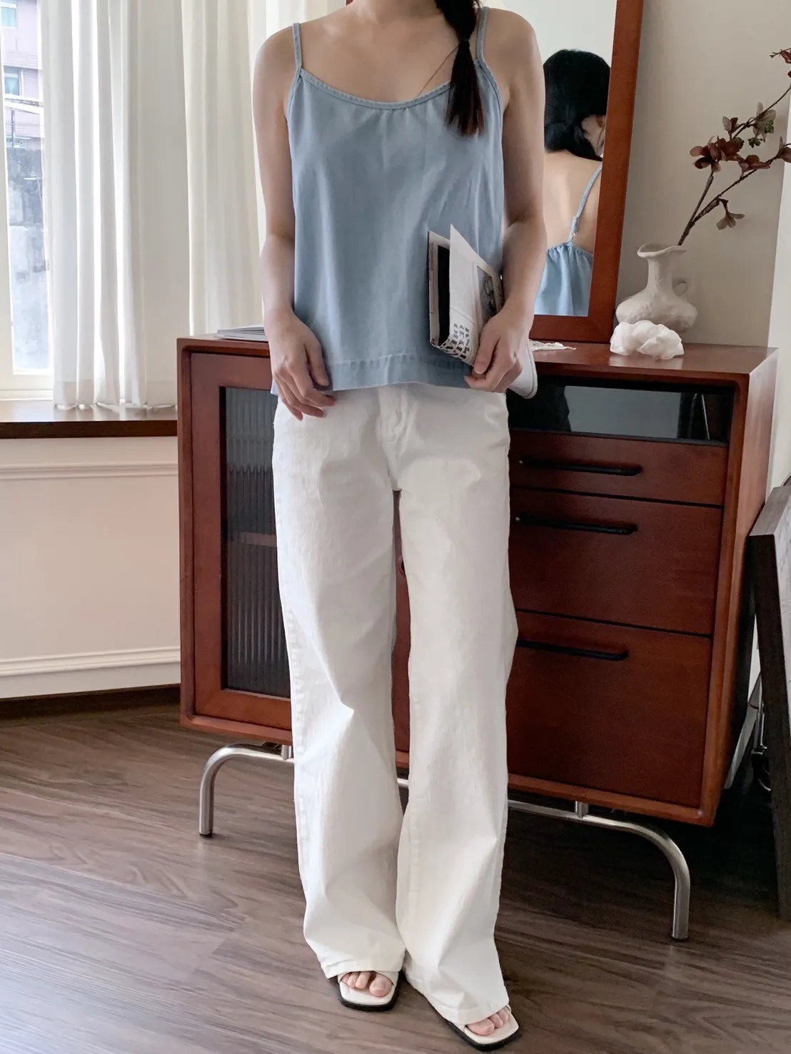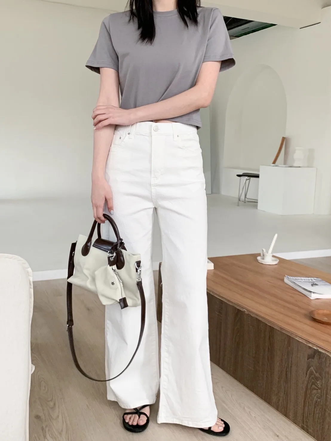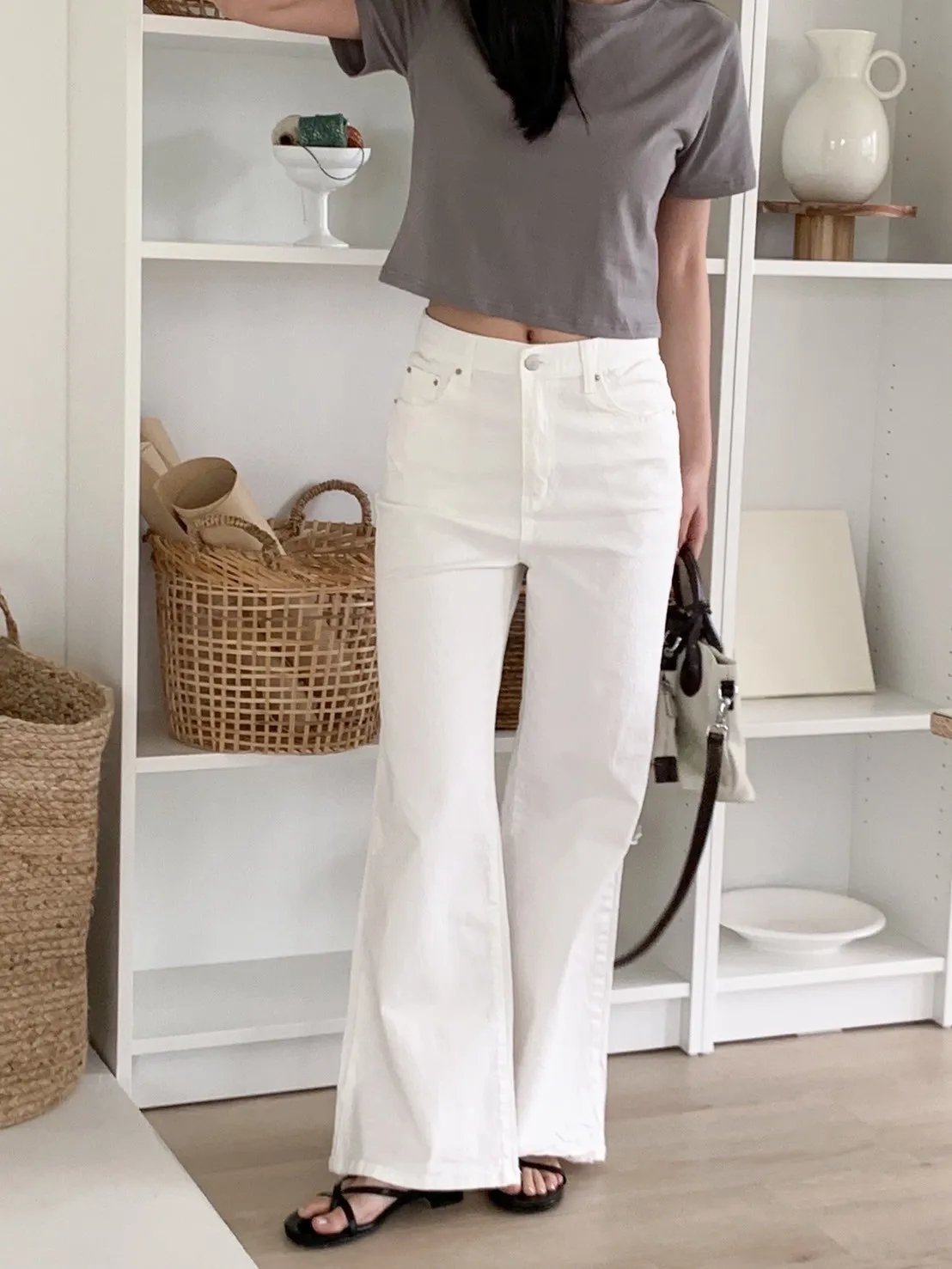 白色牛仔褲 微微喇叭感