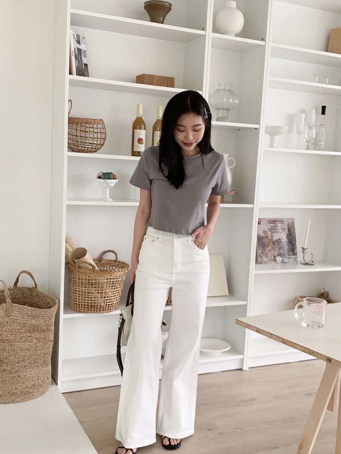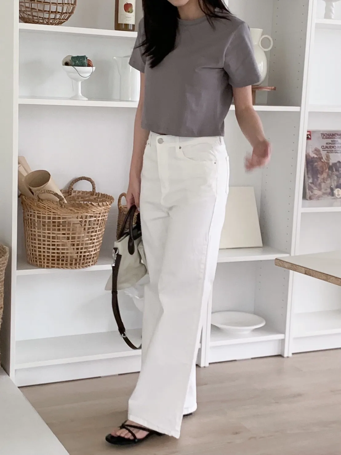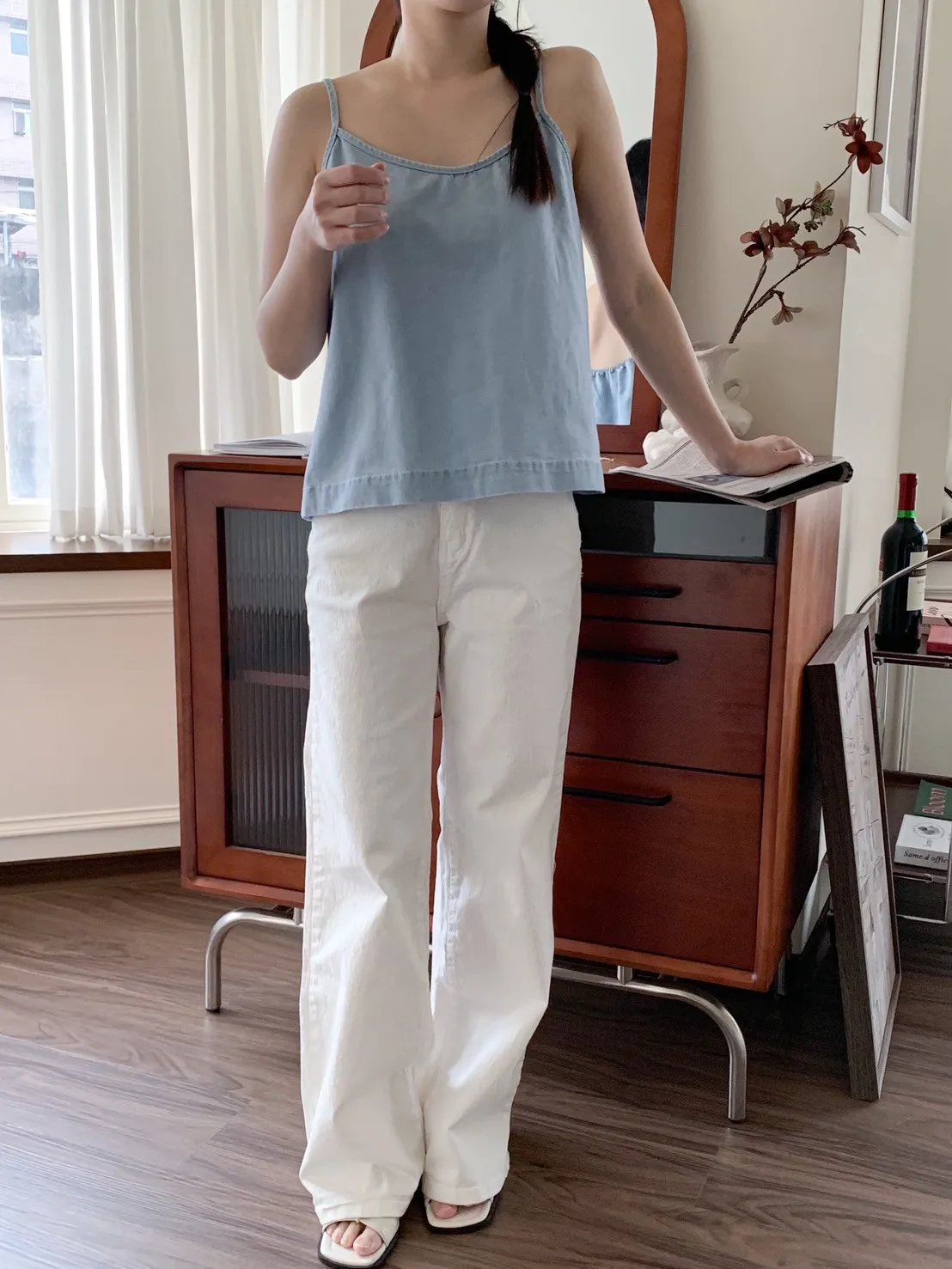 白色牛仔褲 微微喇叭感