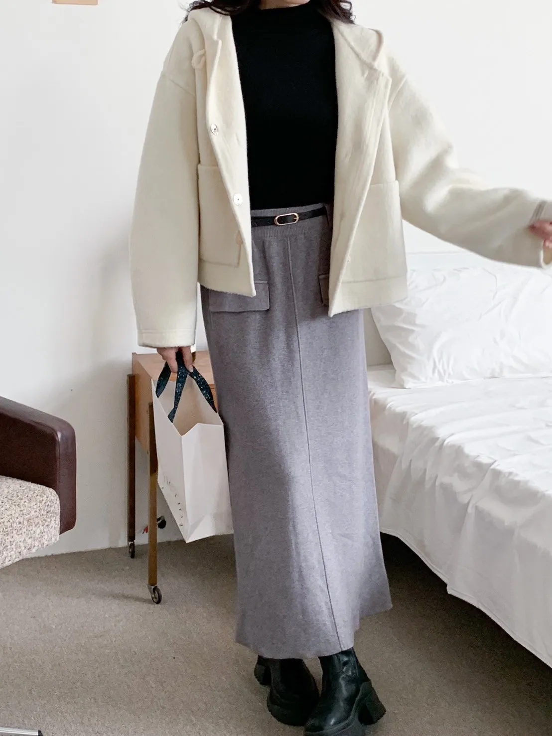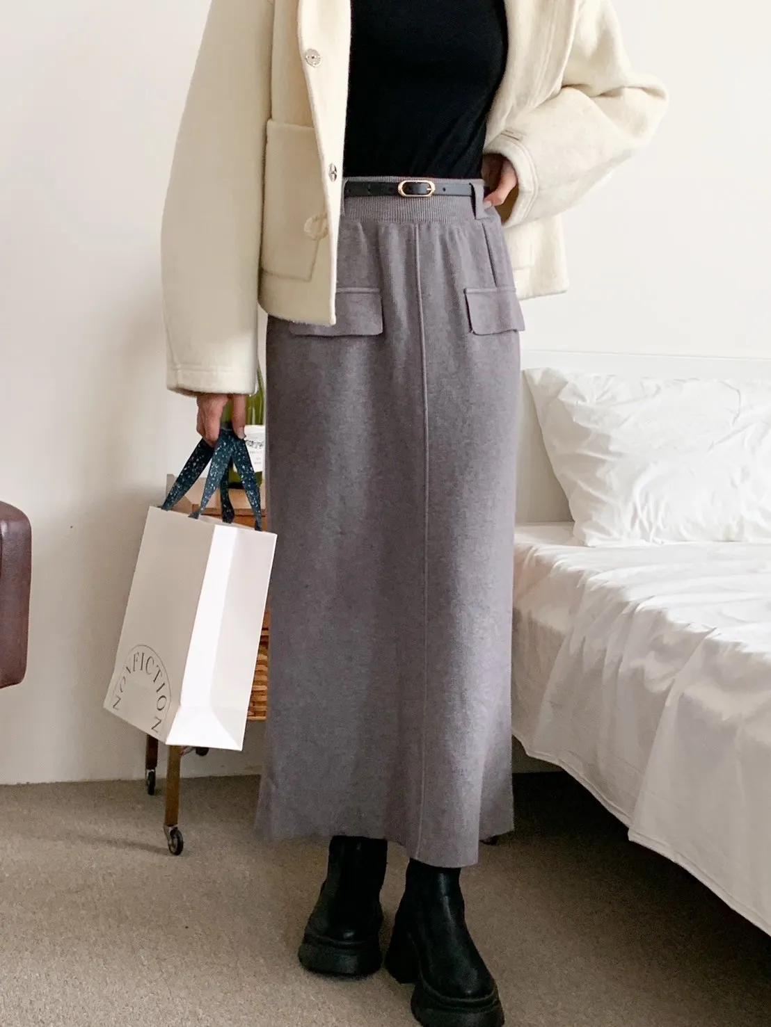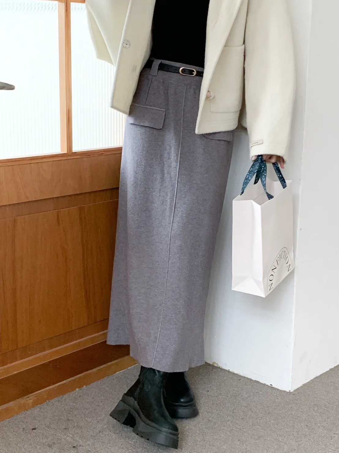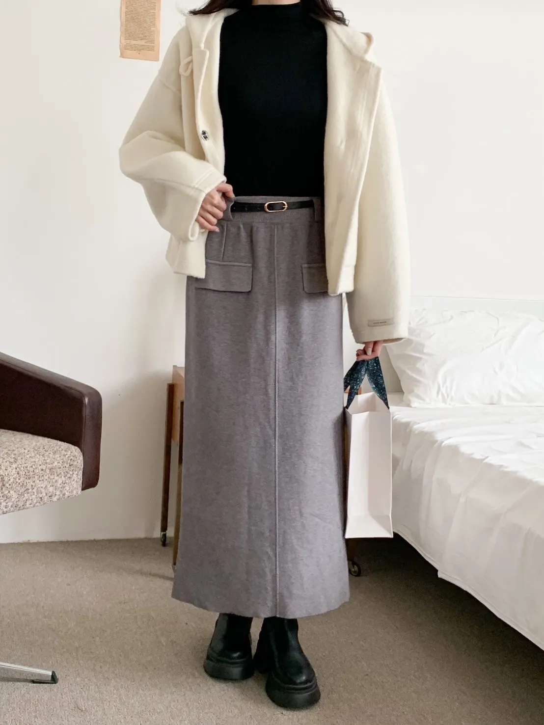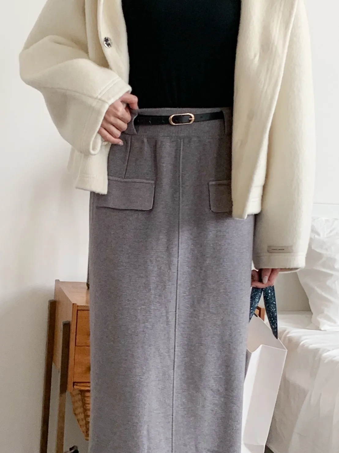 (全新)小雪寶軟嫩針織長裙(附皮帶) 3 colors