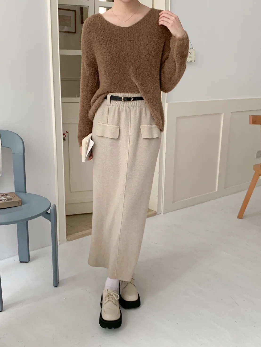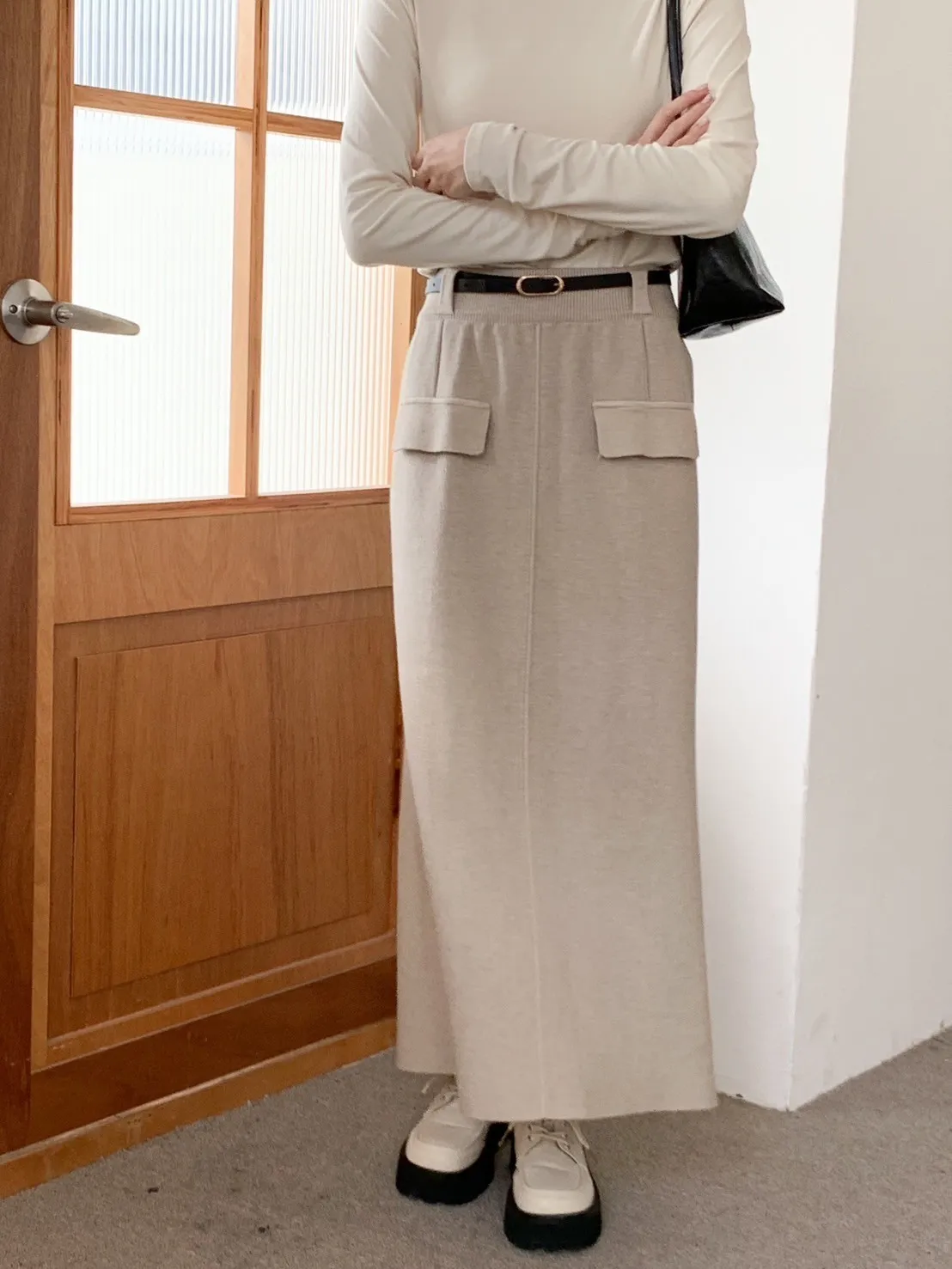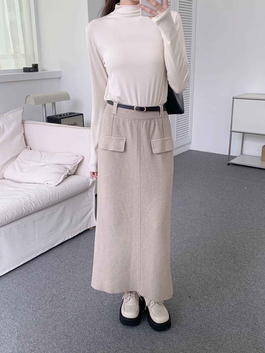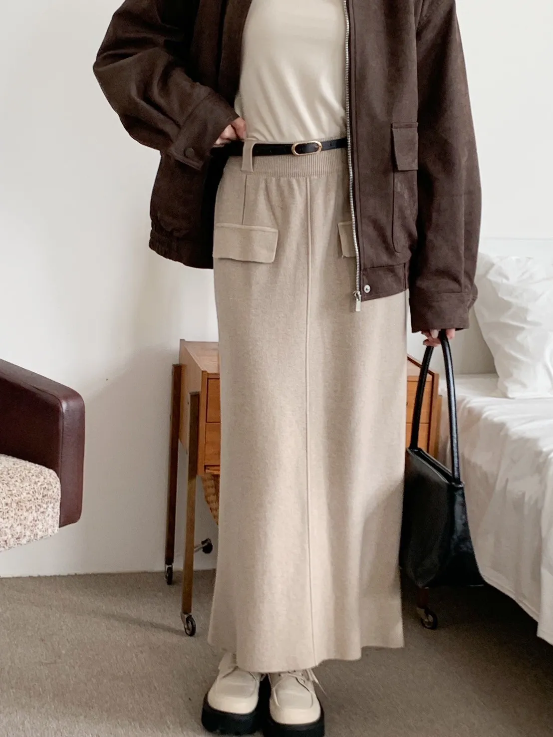 (全新)小雪寶軟嫩針織長裙(附皮帶) 3 colors