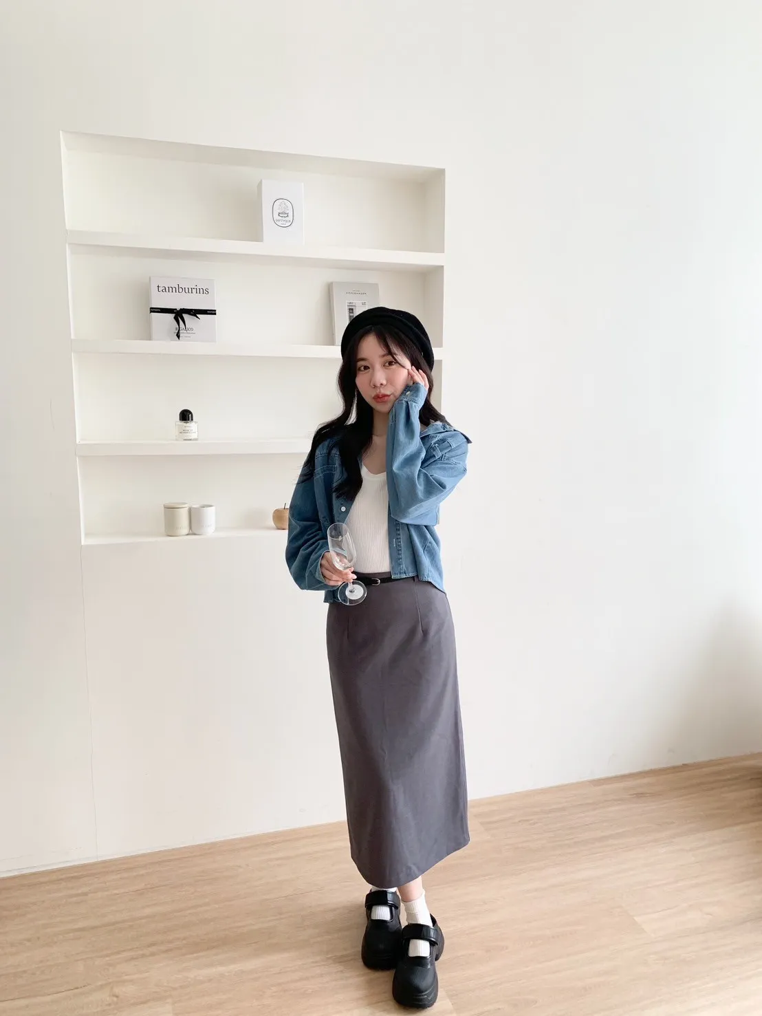 聖彼得堡不顯臀長西裙 (附皮帶)2 colors