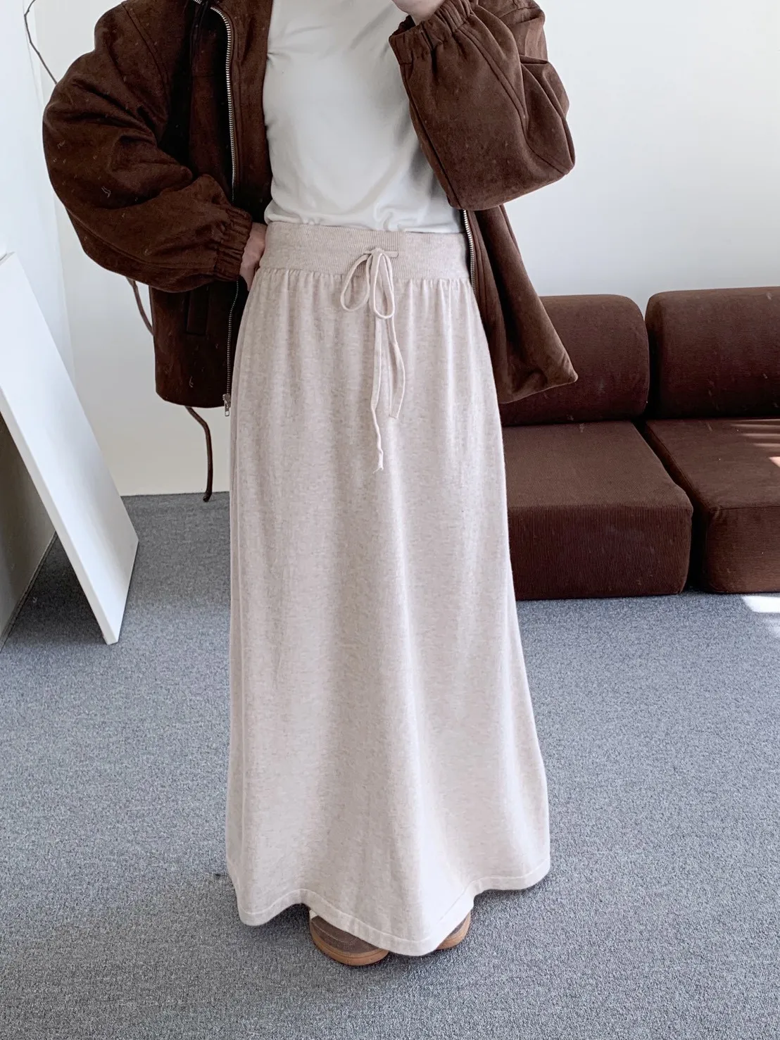 A19溫柔氛圍不顯臀針織長裙 2 colors