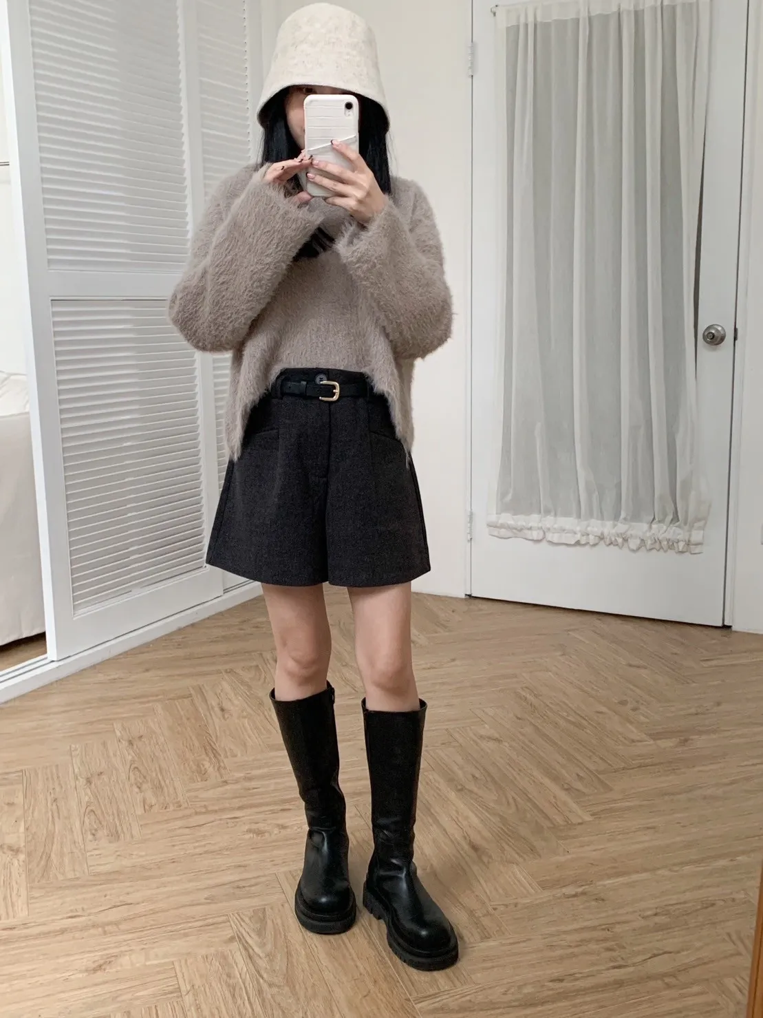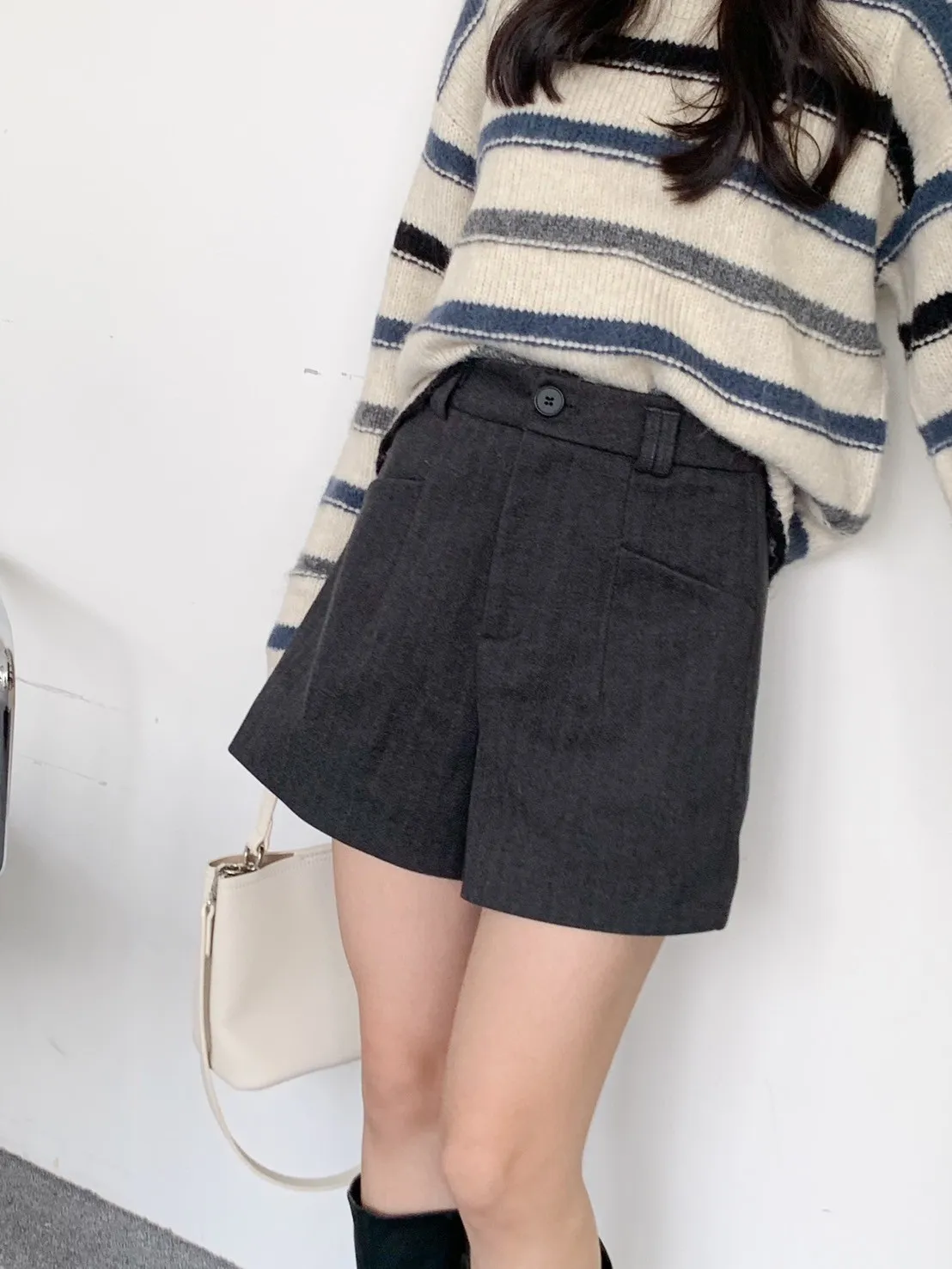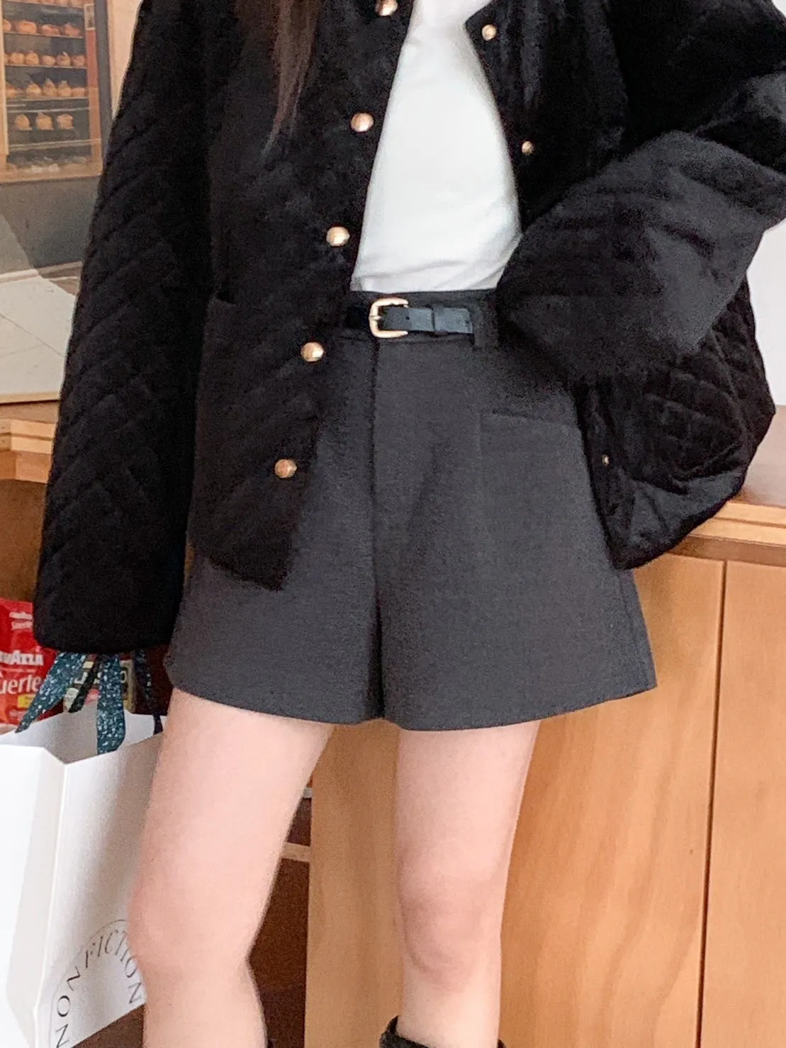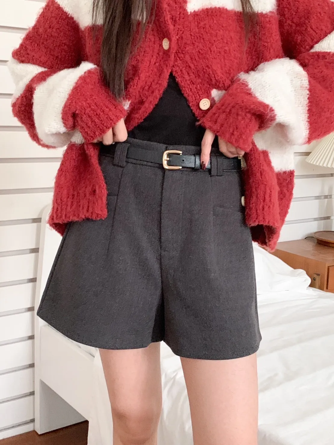 (全新)塞納河畔挺版毛呢短褲(附皮帶) 2 colors