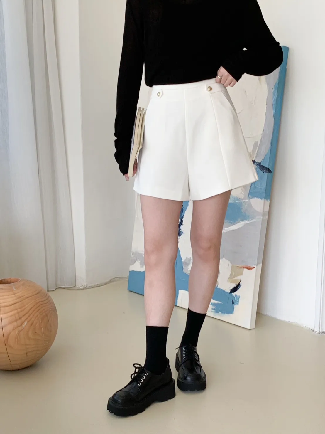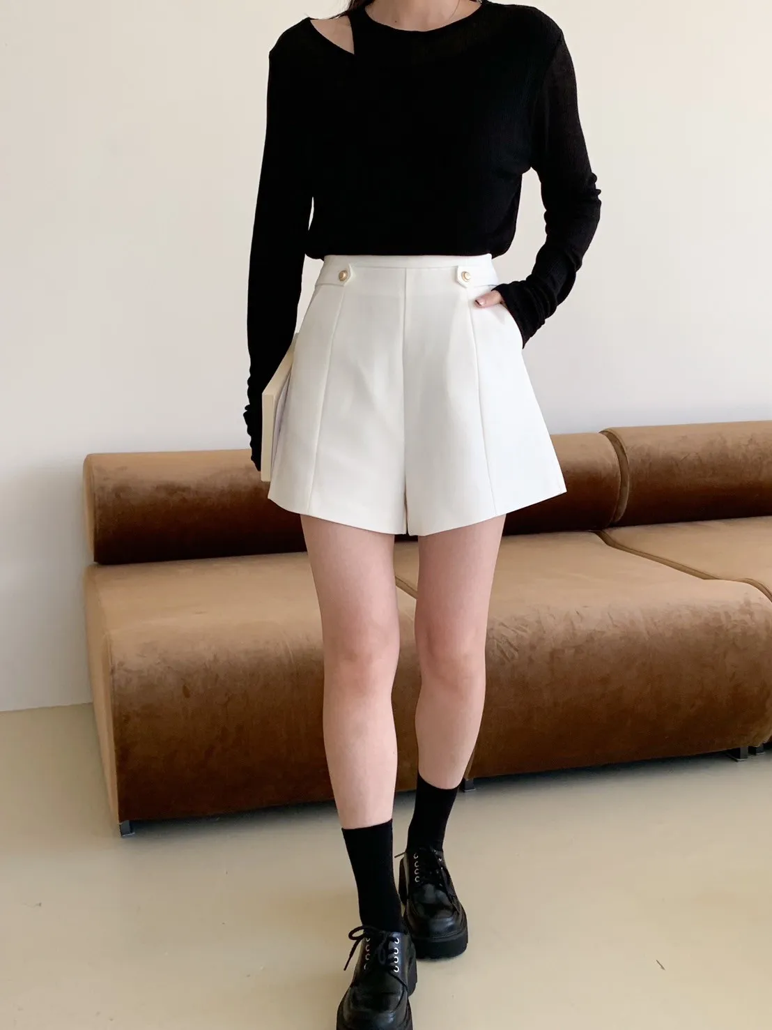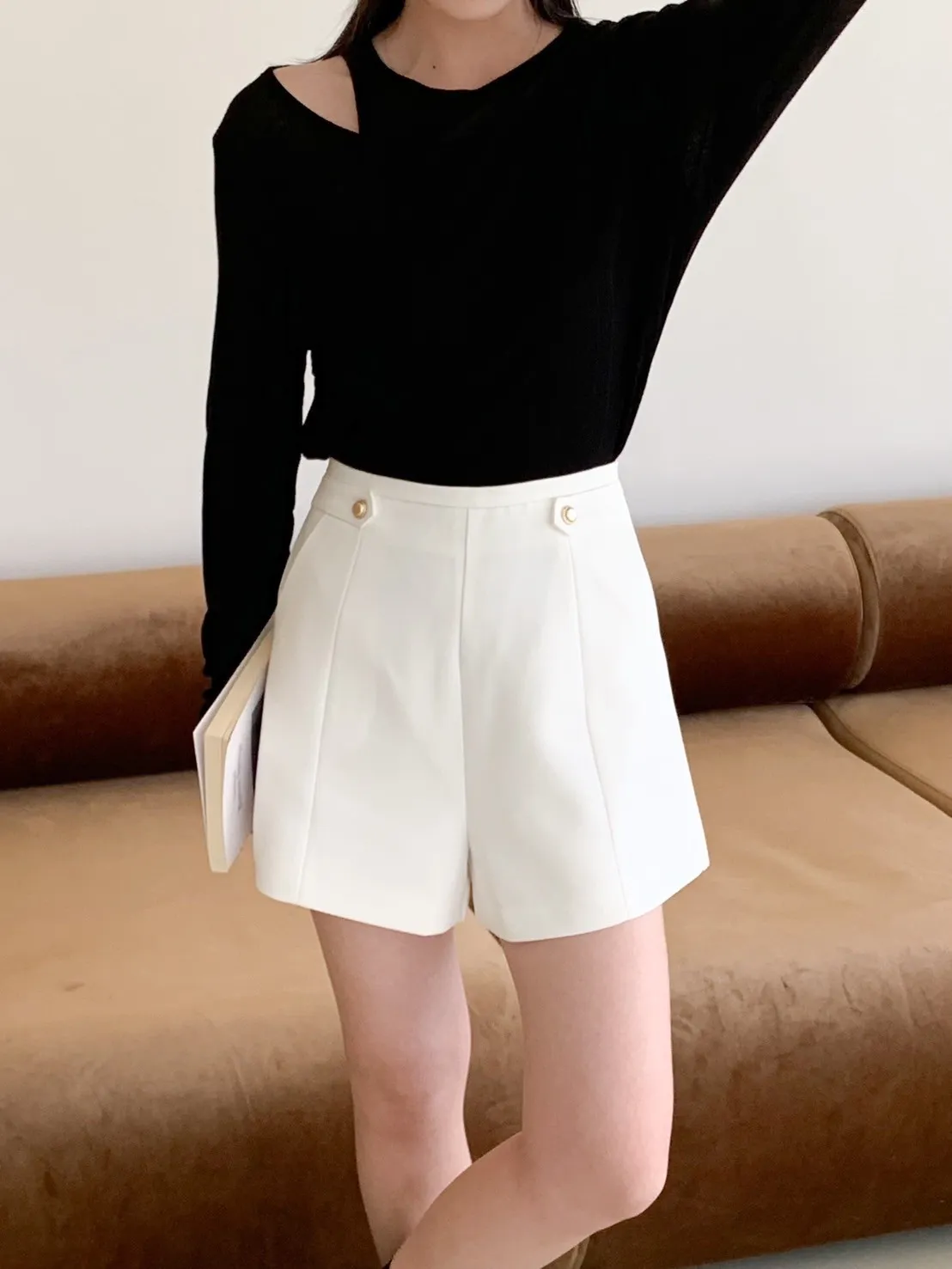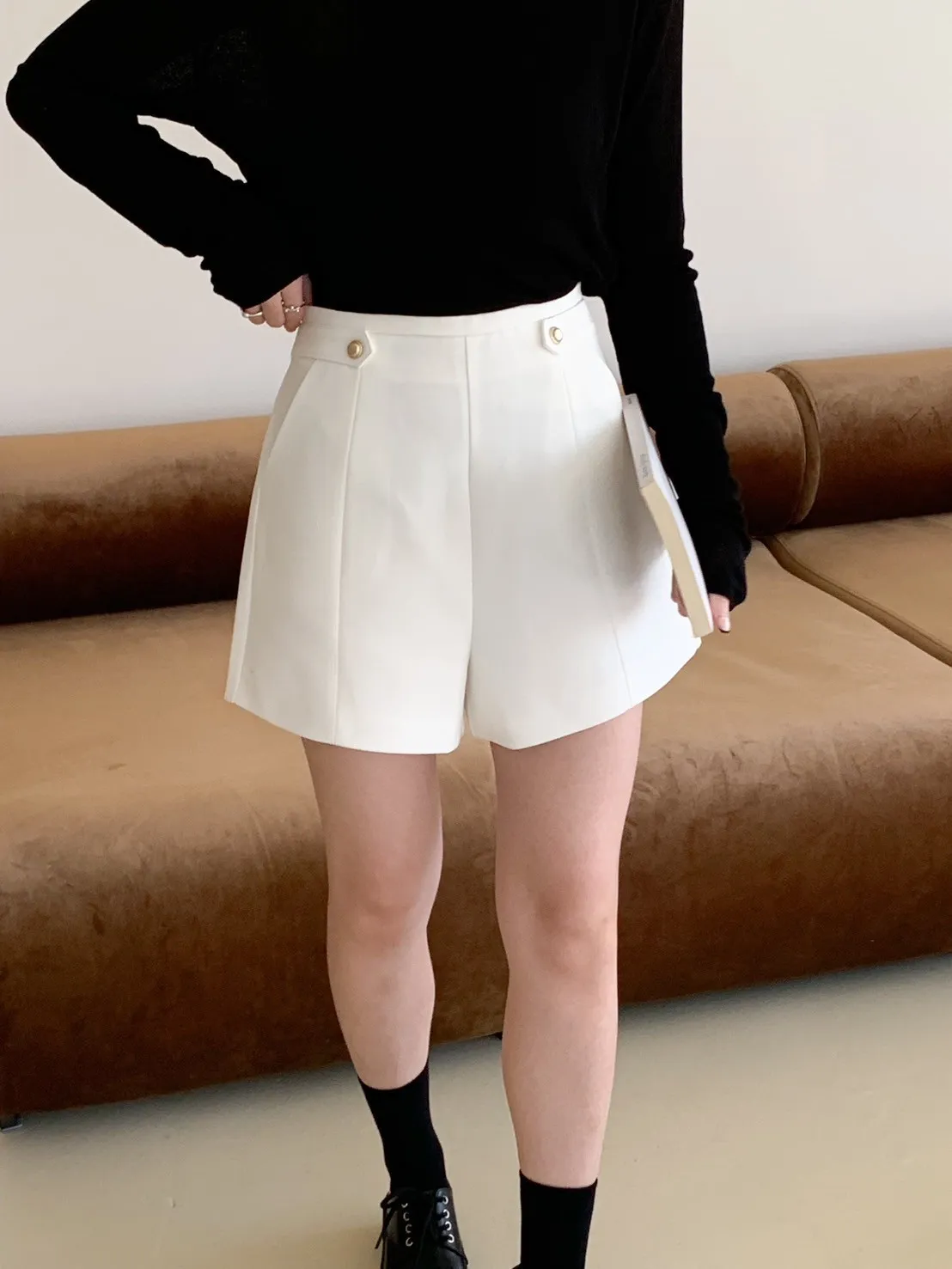 高級感金釦!修飾屁屁短西褲 2 colors