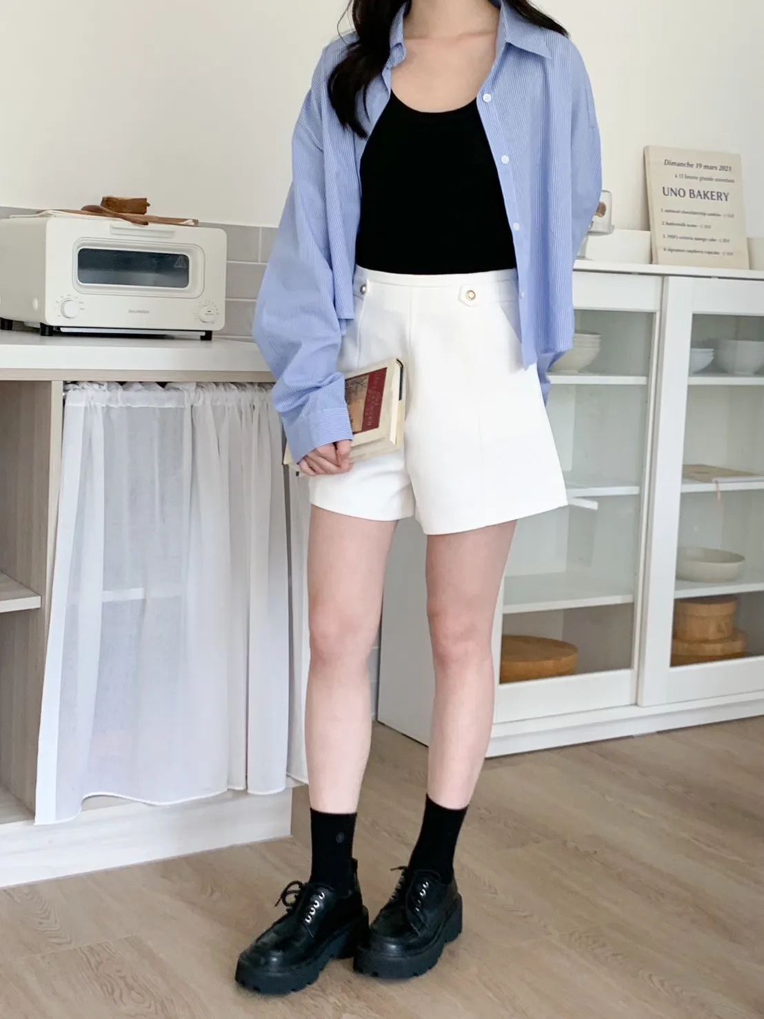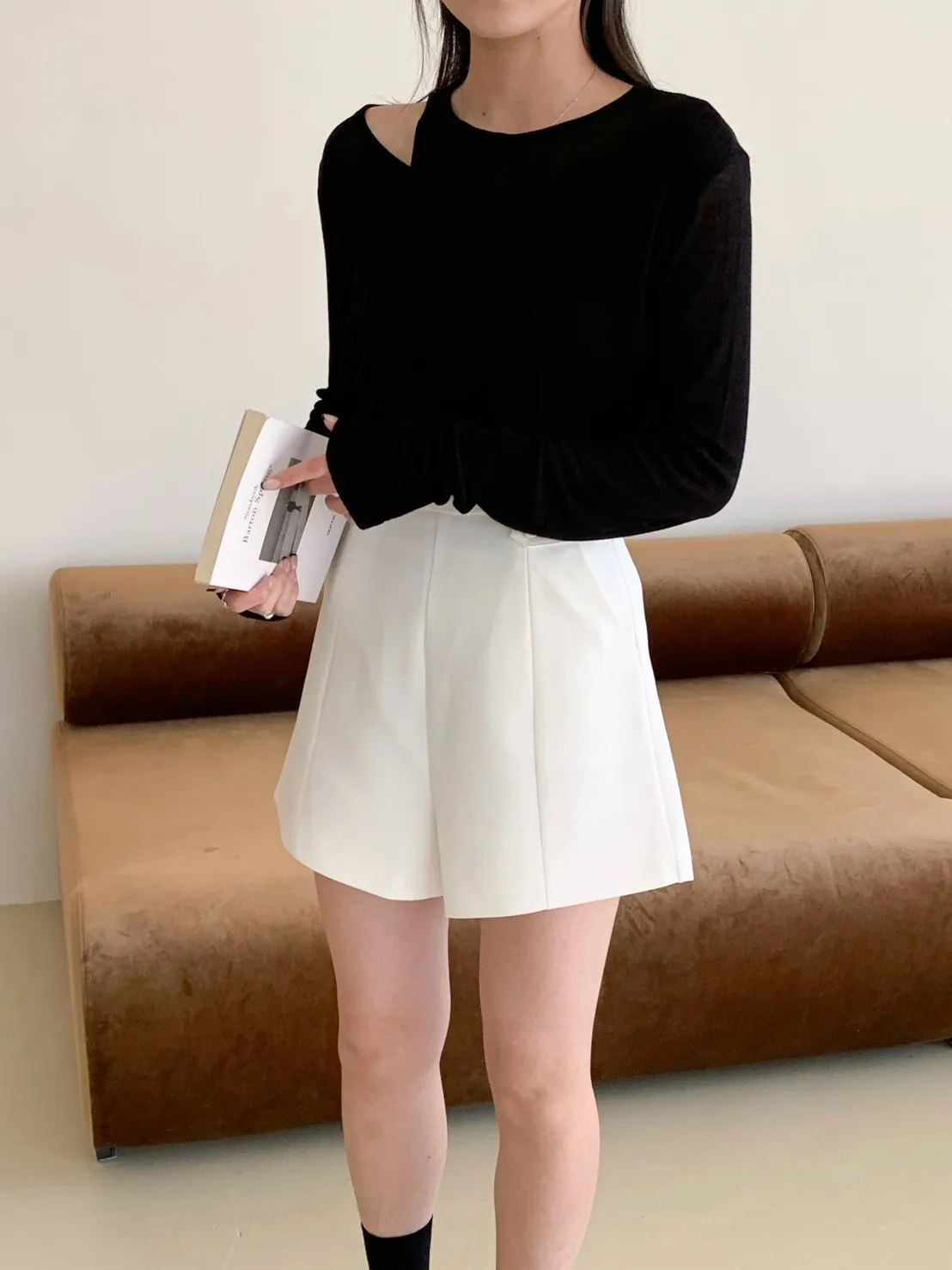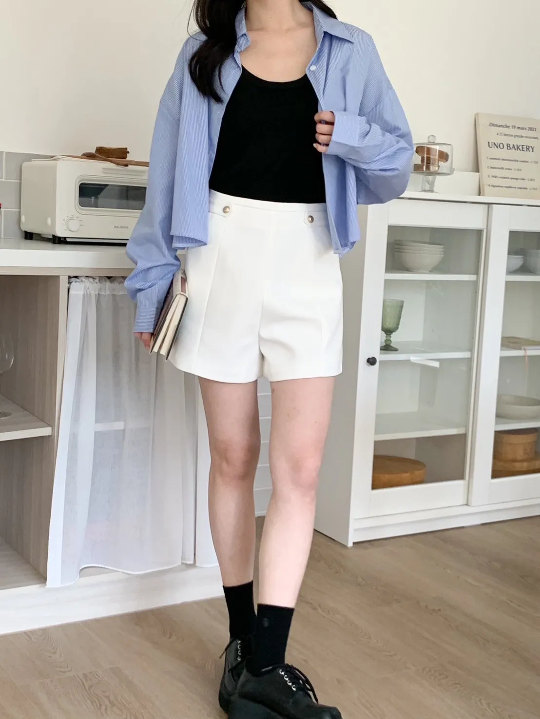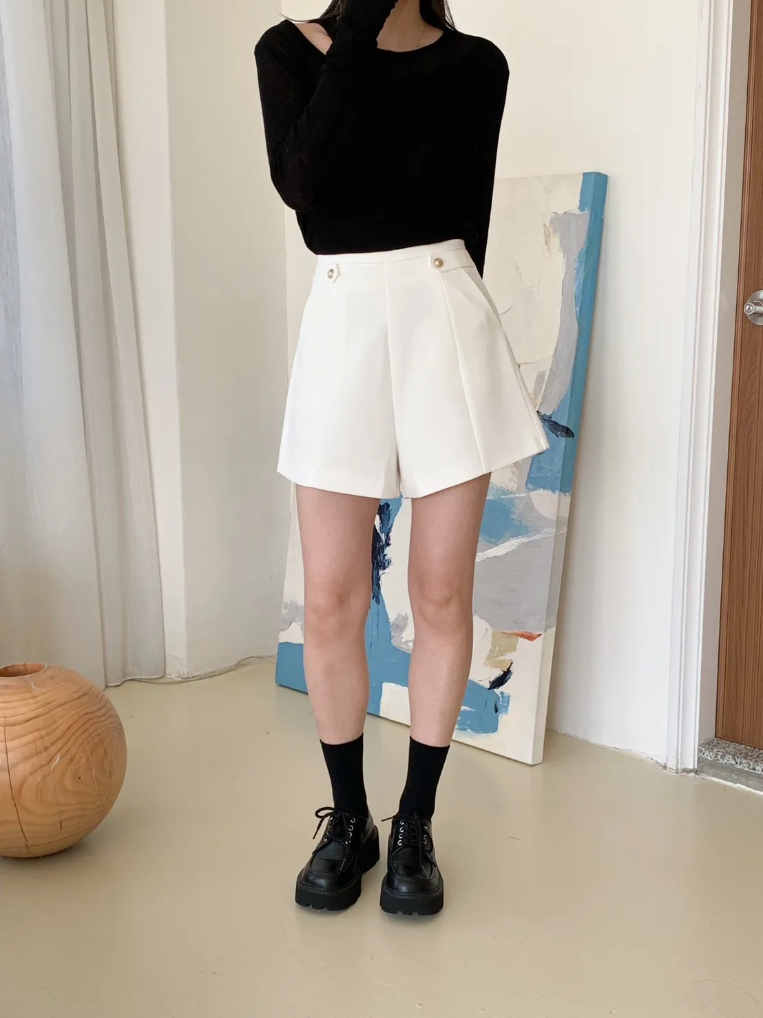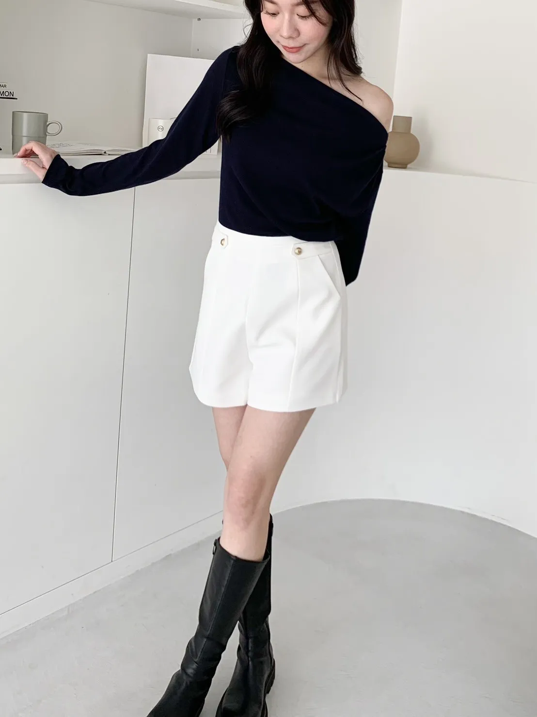 高級感金釦!修飾屁屁短西褲 2 colors