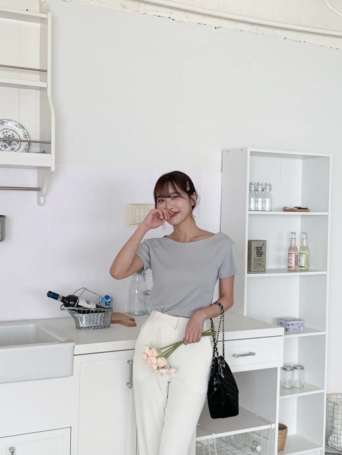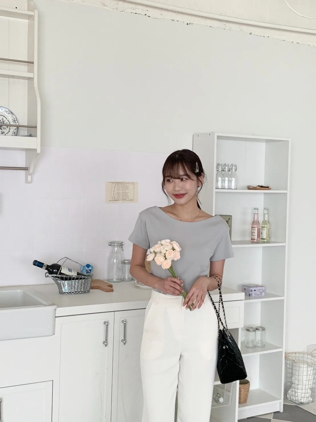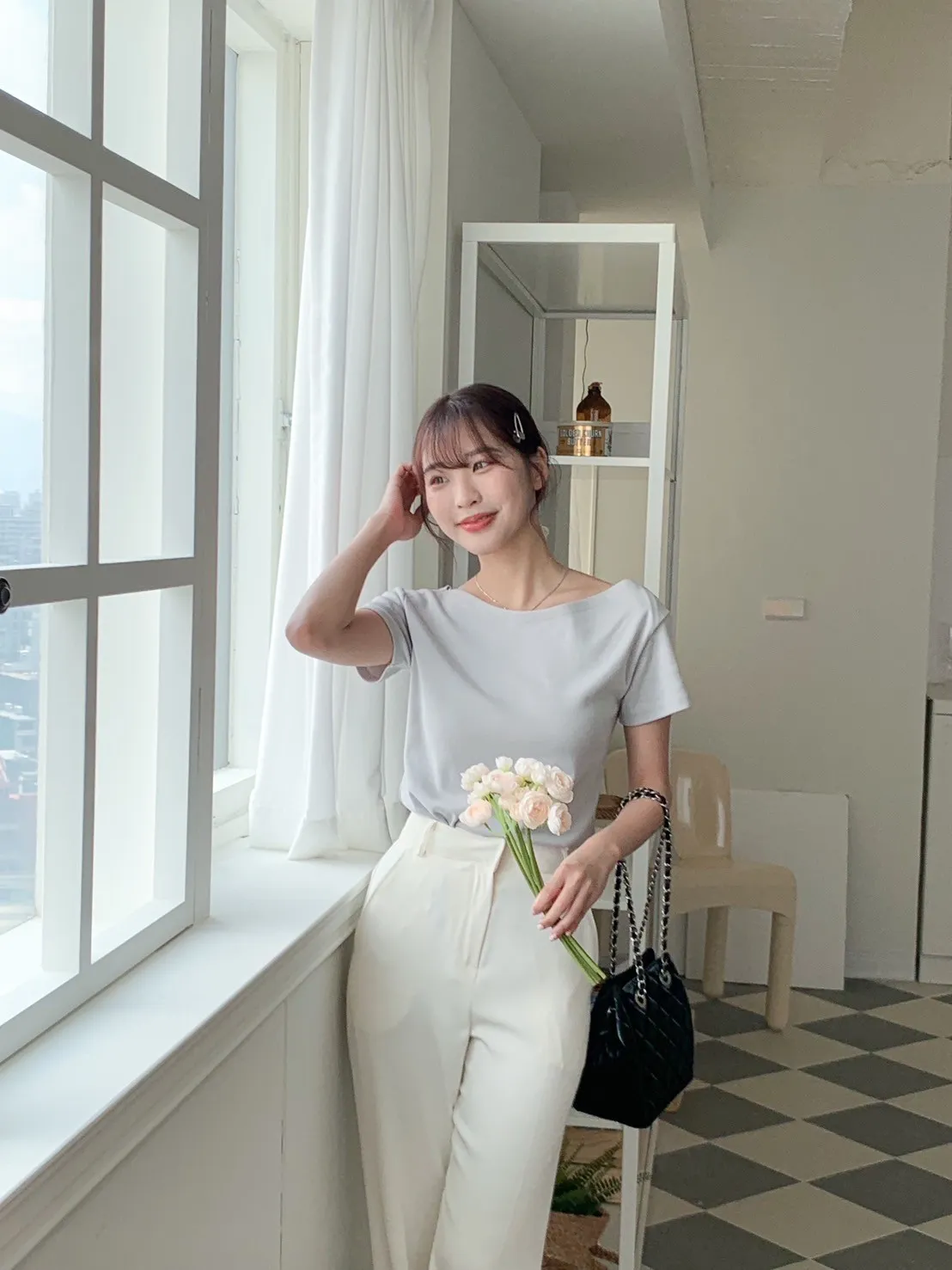 ➋ 領口平領設計 能露出瘦瘦的鎖骨