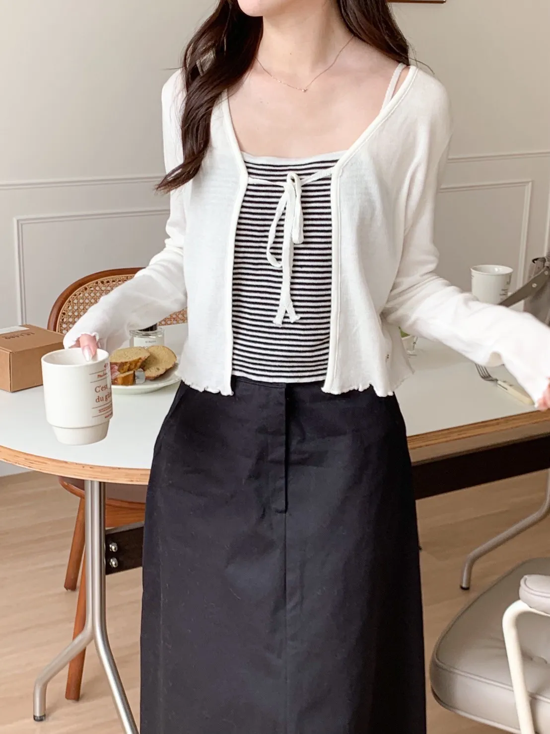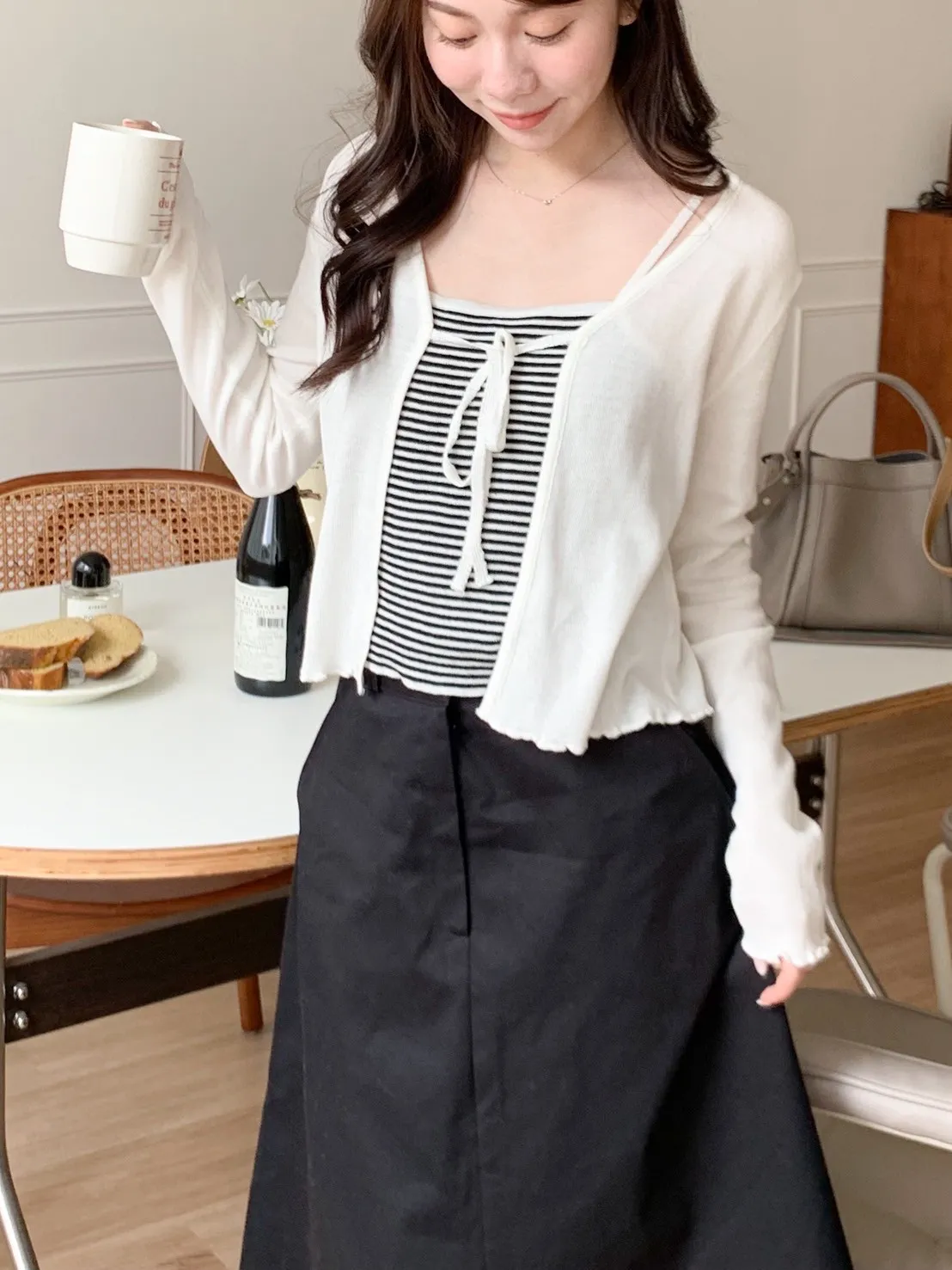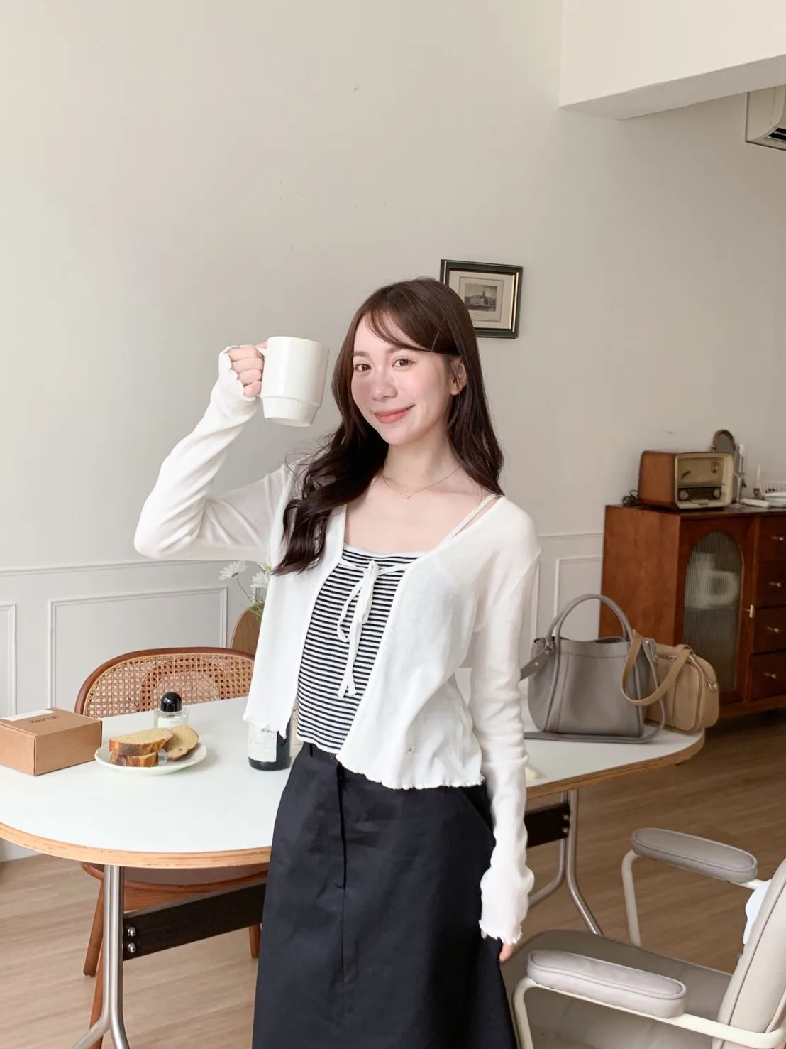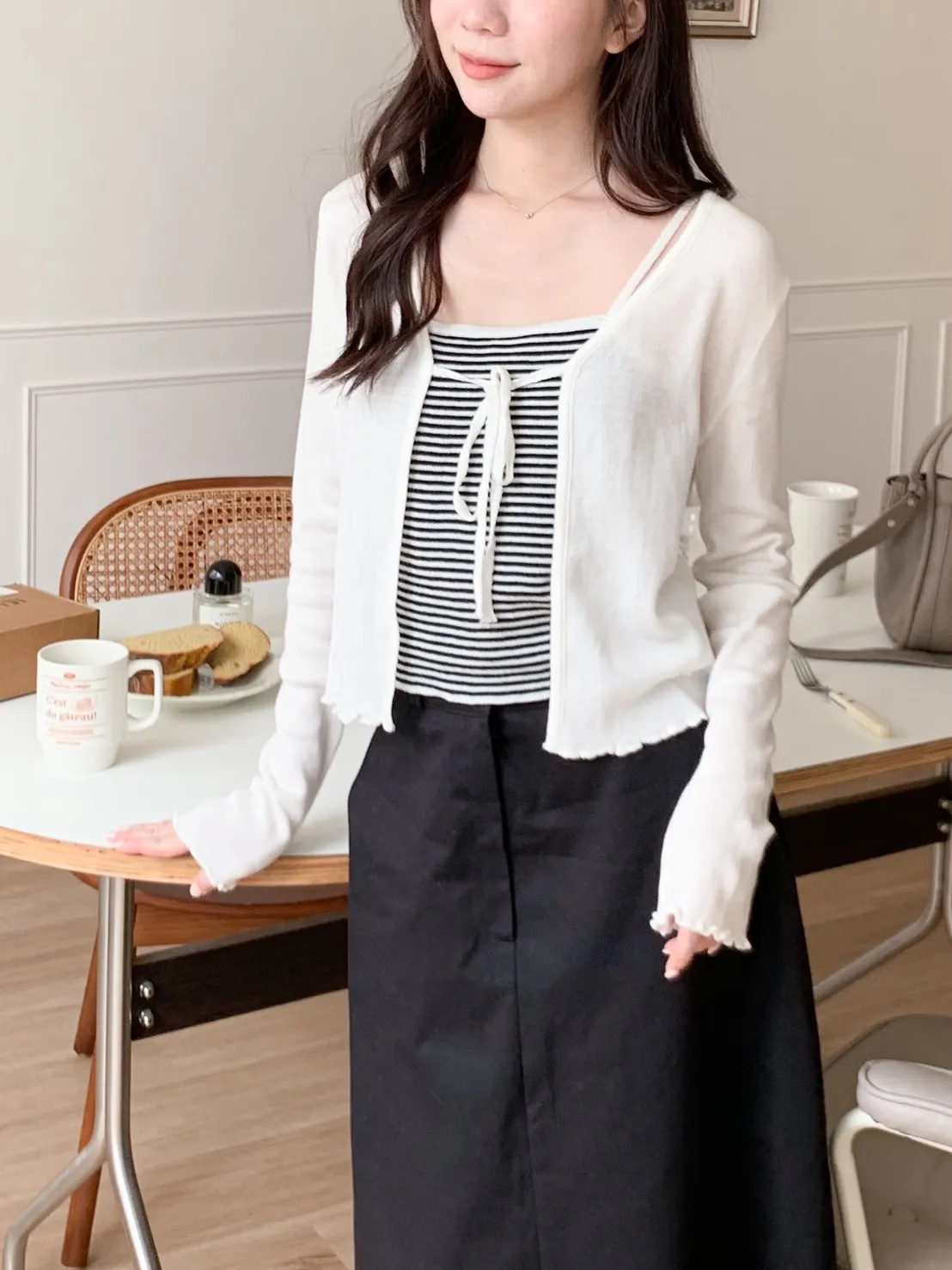 ➌外套 綁帶設計+袖口下擺捲捲邊造型
