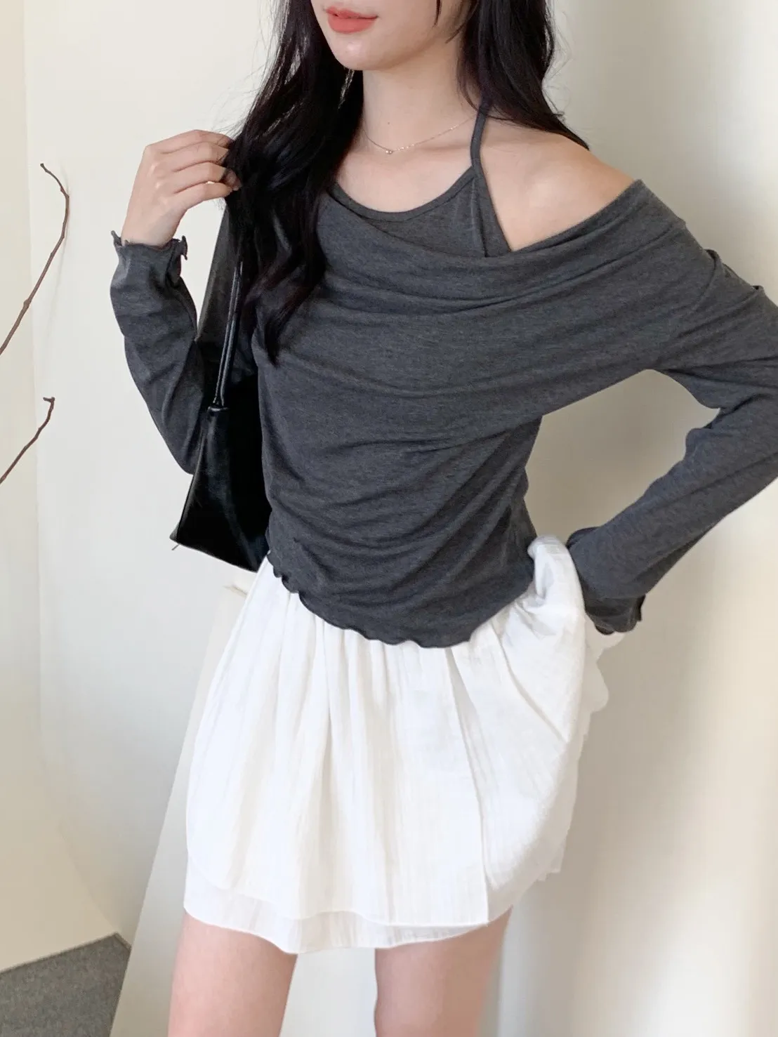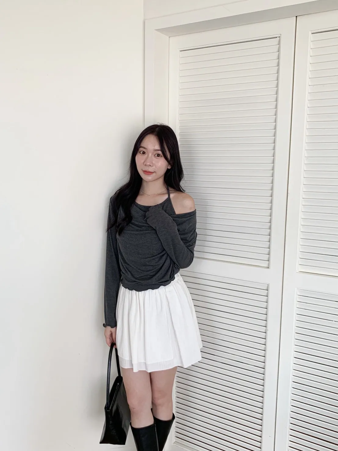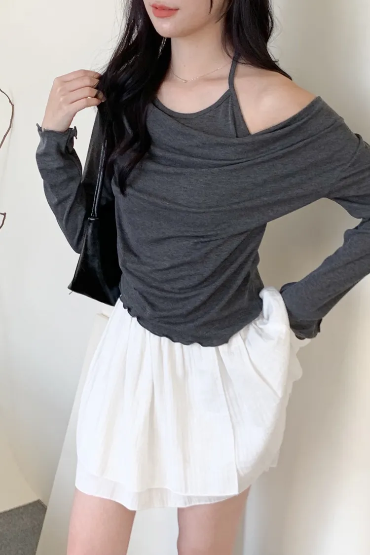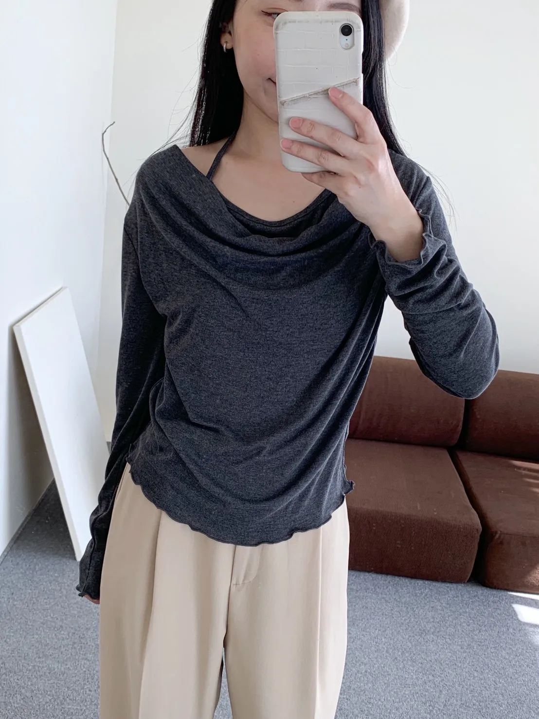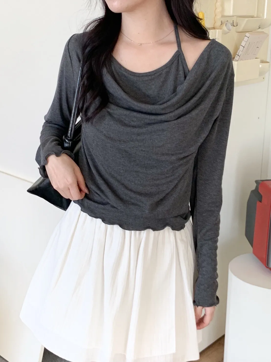 A05秋日輕唯美!繞脖衣(假兩件)2 colors