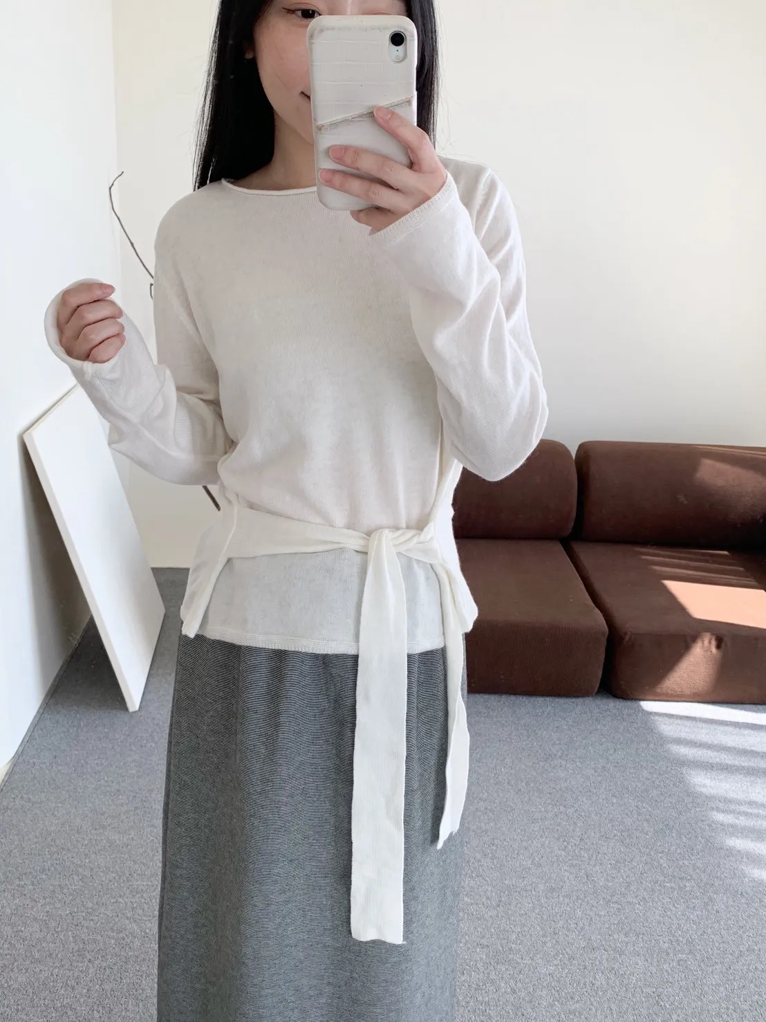 A07一秒溫柔!圓領腰帶針織衣 2 colors