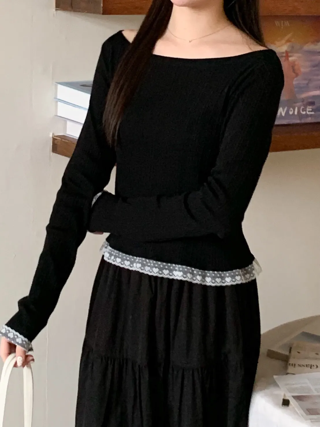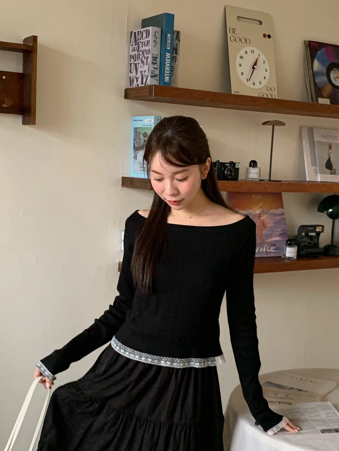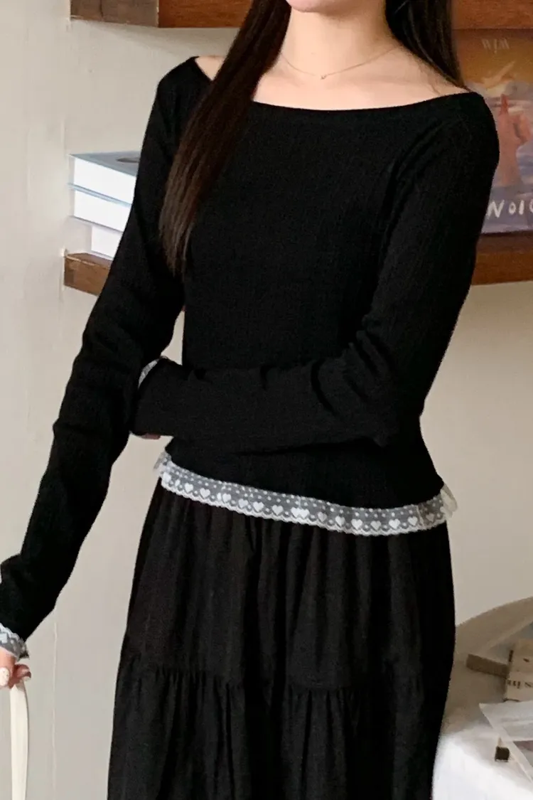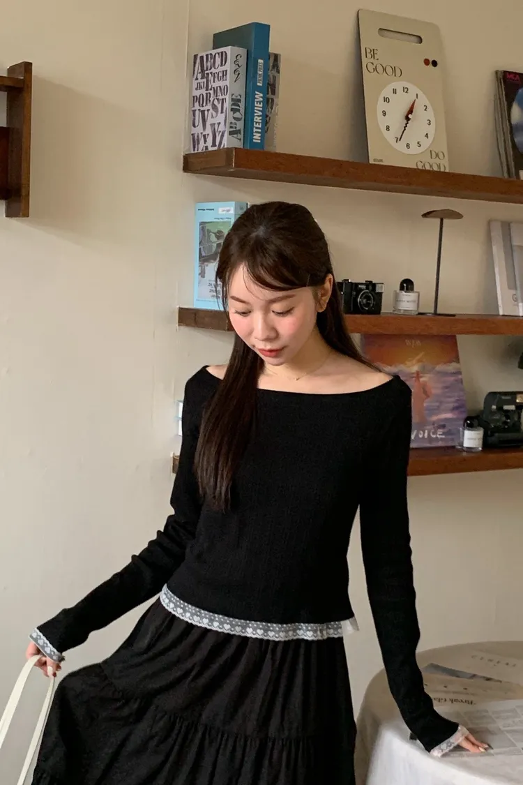 溫柔女孩!蕾絲平領衣 3 colors